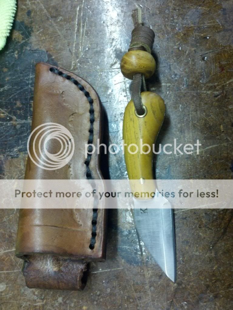 Jk English Pocket rover, Just shy of 4 inches long, 1 3/4 inch blade. Osage handles with bead and lanyard, brass pin and lanyard tube. Comes with leather sheath , which has belt loop. I never used it just played with it. $ 65 shipped usa AWESOME knife.