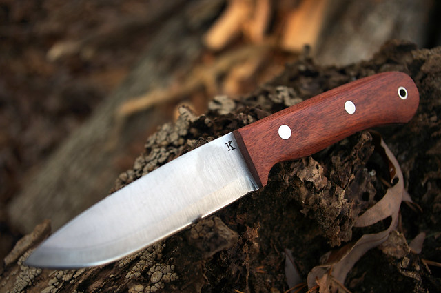 The fit and finish is spectacular beautiful lines and a hand-filling handle that makes this knife seem like an extension of your own hand. And Johns heat treatment means youll have a blade that will withstand abuse that most of us wouldnt dream of putting our knives through. Browse his forum and youll find threads where his knives have chopped bricks, cut metal hoods and endured a lifetimes worth of heavy abuse in a matter of hours.