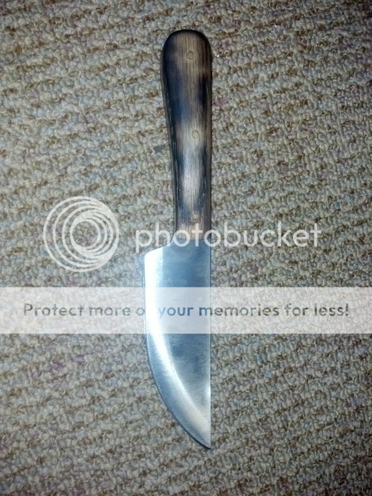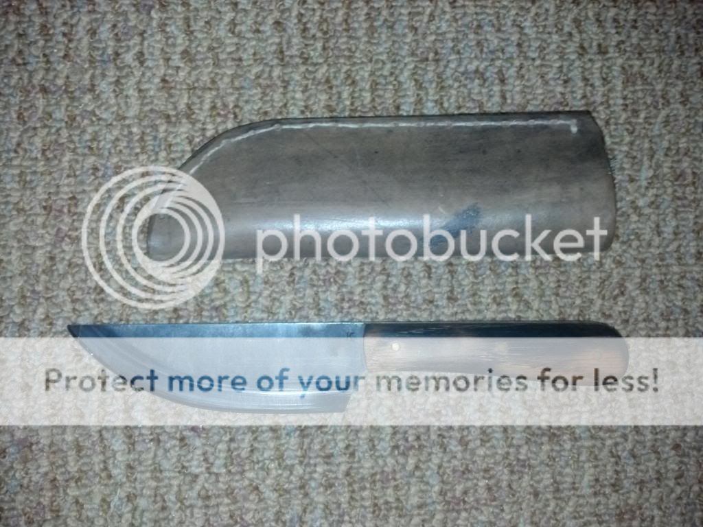 Bought this knife from a fellow forum member a couple of months ago used. Its a great Knife and I love it just have too many at the moment. Knife has been used and sharpened and is in over all very good user condition, burnt oak handles with O1 steel. leather sheath with belt loop. USA shipping only and paypal is prefered. $100 shipped usa. First " I'll take it" here gets it.