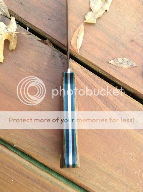 Handles are bocote, with 1/8" thick black liners, and thin green liners
