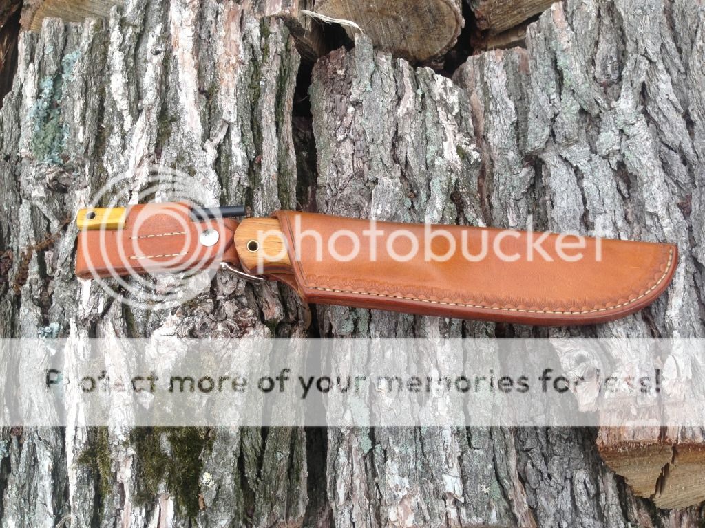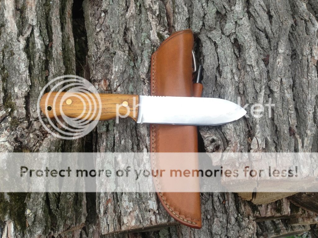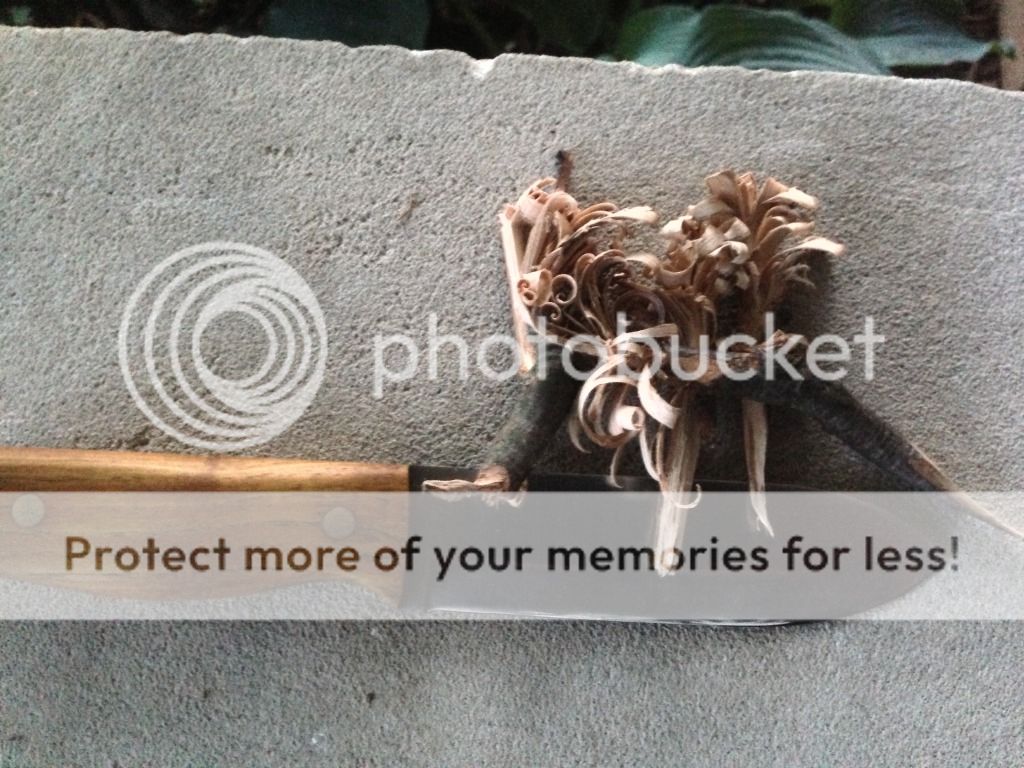 So a while ago on the USN I auctioned off my JK phoenix with the proceeds going to MS Hanna! it was a great success and was actually auctioned off again over there by the buyer to help hanna some more. Well it was one of my favorite woods tools. comfy handles. great scandi grind that was easy to sharpen and keep sharp. John had made me a nice leather sheath with mine and firesteel holder. it was about perfect for those over nighters in the woods. well anyways Mykel was kind enough to donate his for Hanna also and Tal made a amazing sheath for it. I entered the raffle a few times but much to my sadness didn't win. A few days later I was contacted by mountain wildman. he had won the raffle but unfortunately for him the knife didn't fit his hands. he offered it up to me at a fair price so I jumped on it. this version was a modified design but mykel and I'm not sure which one I like better yet. they are both very awesome. I do dig a kephart so I'm thinking this might be my favorite. I'm glad to have the JK phoenix back in my stable at this time. still has John's good heat treat. I took it out on the porch and immediately made some fuzz sticks and checked to make sure it threw some sparks. it was soaring threw the wood and threw some amazing glowing globs of fire