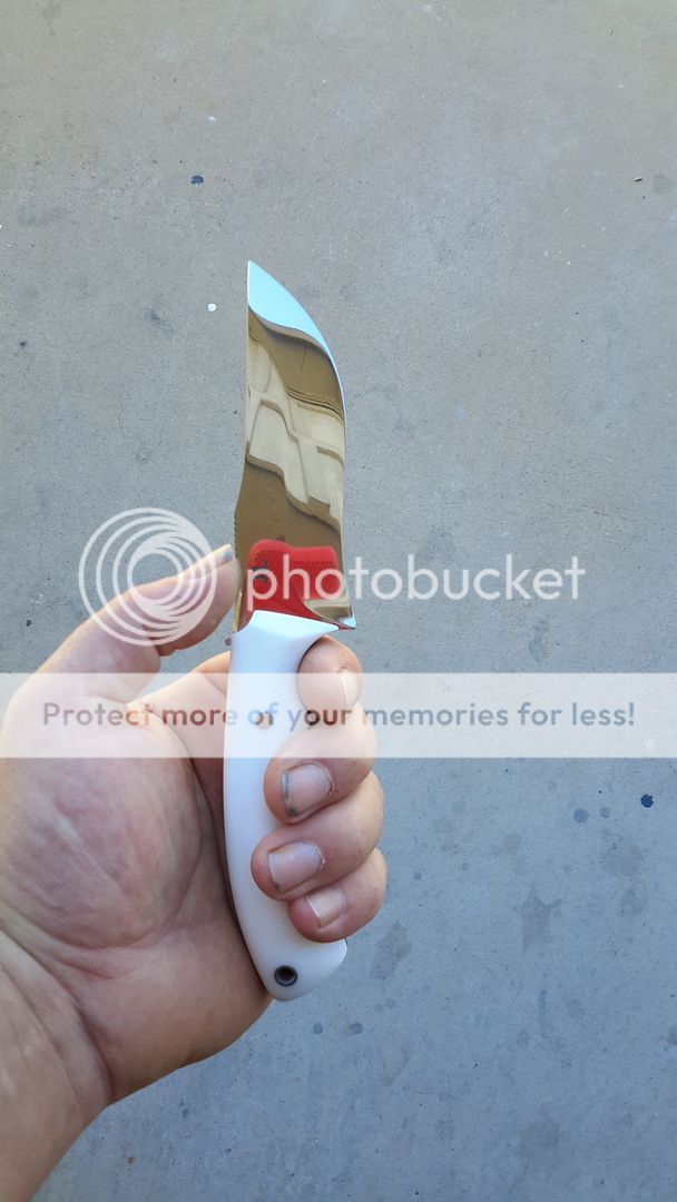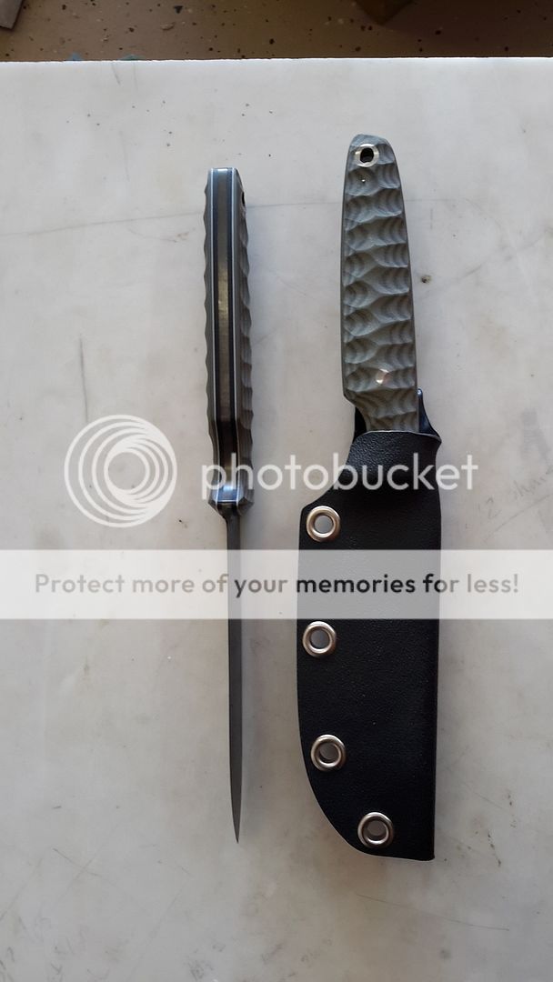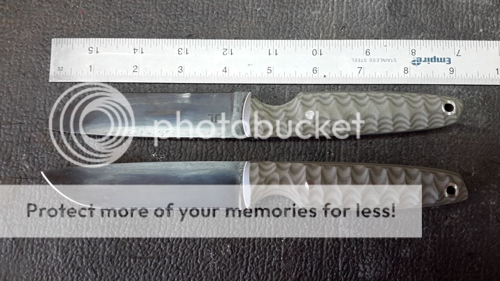 FIRST ONE IS N690 STAINLESS STEEL BLADE JUST OVER 1/8" THICK , 1-3/8" WIDEST POINT