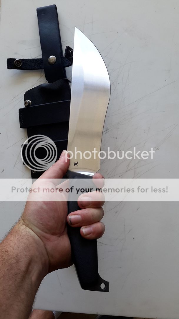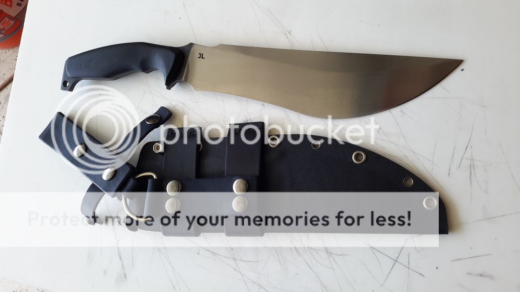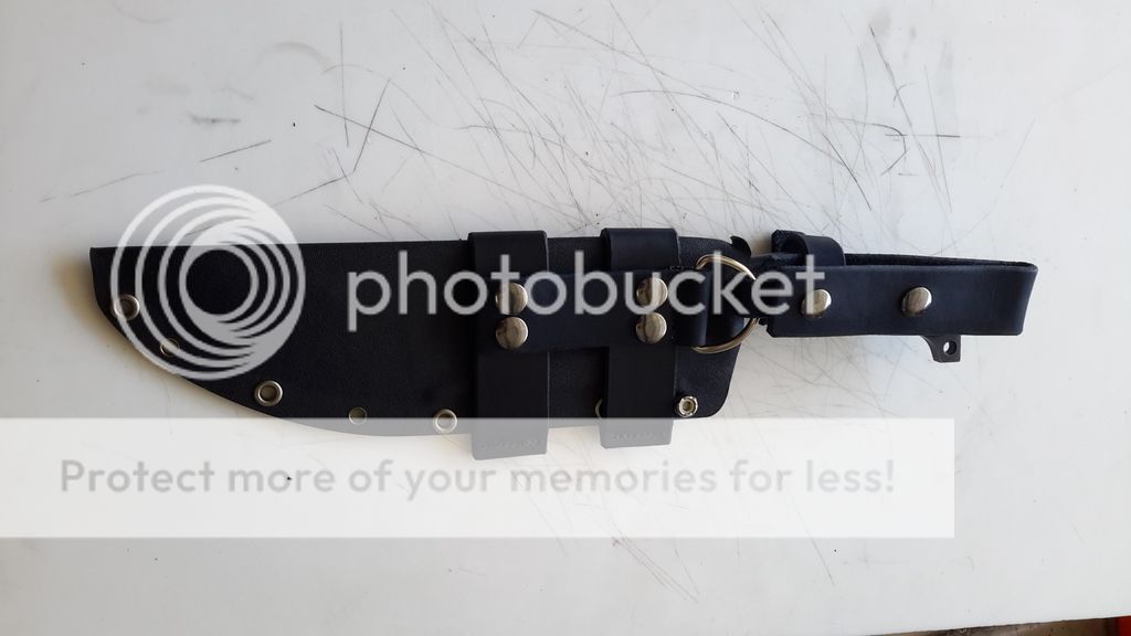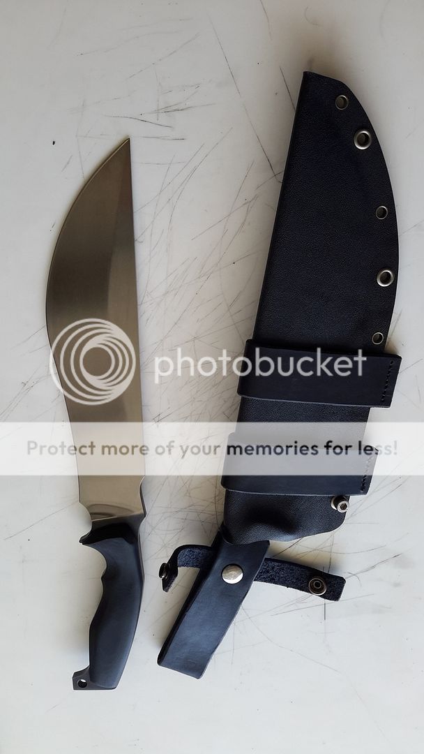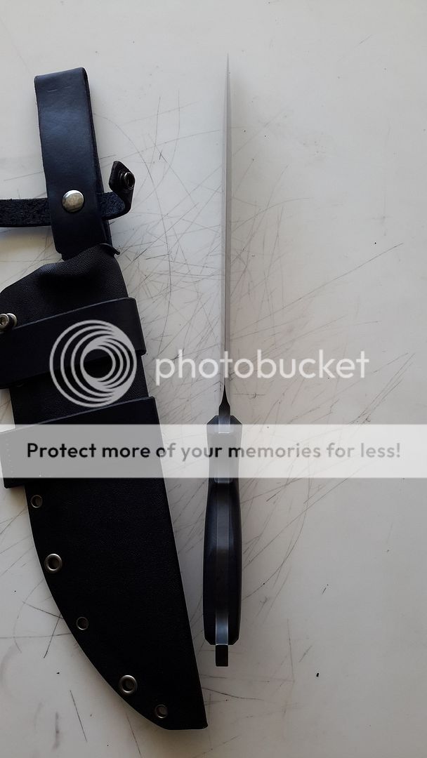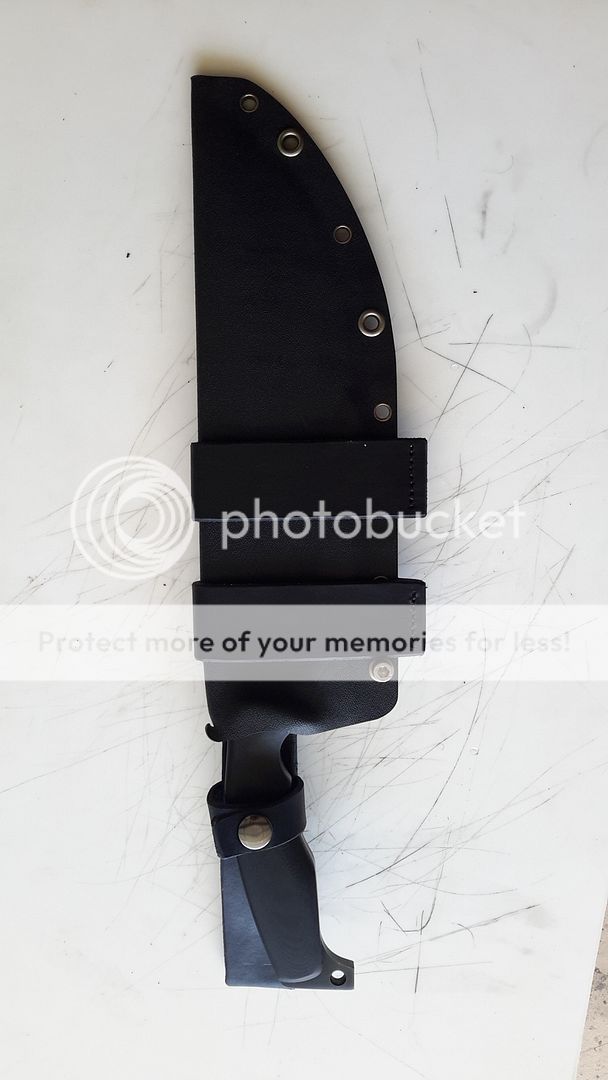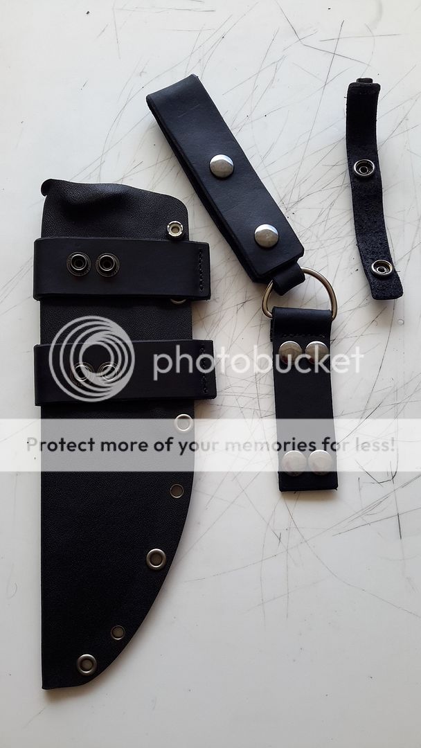 SHEATH IS KYDEX WITH LEATHER SCOUT AND RIGHT OR LEFT HAND CARRY ALL REMOVABLE