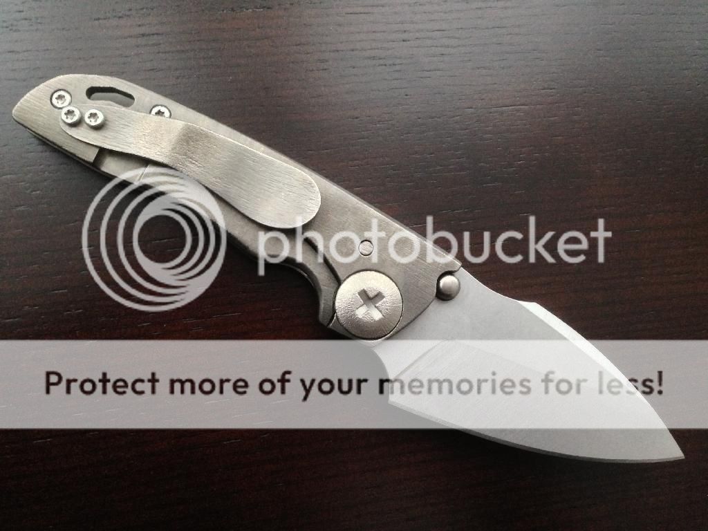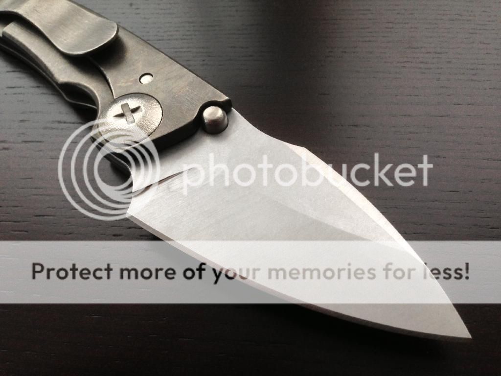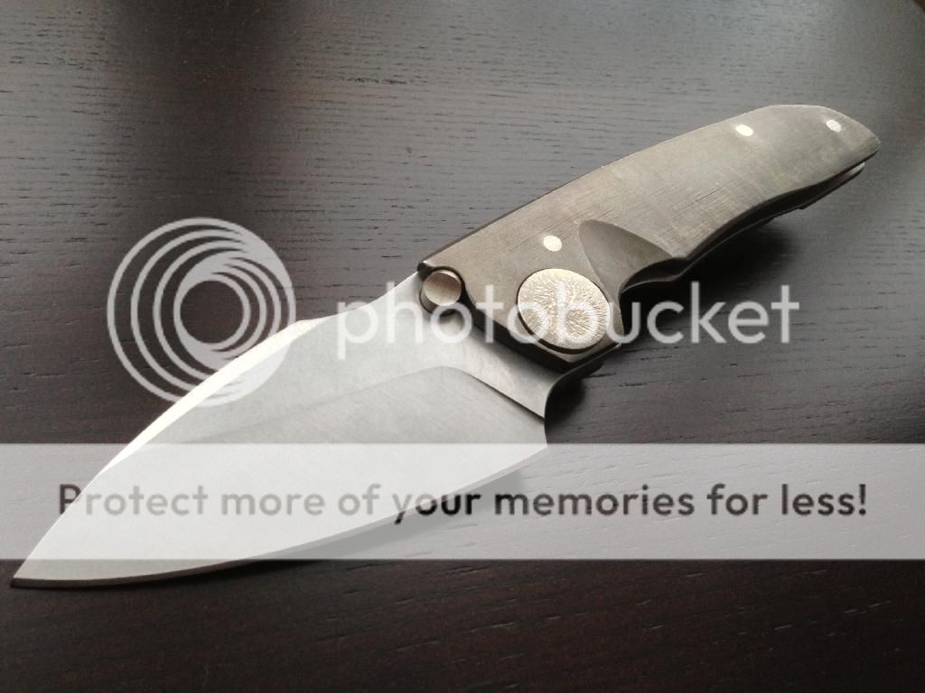 John Gray G8 THUCK custom folder with a nice bronze/silver anodized "bark" finish. The blade is lightly stonewashed and has a nice harpoon grind. The knife uses caged bearings and is incredibly smooth. Smoothest knife I have handled. The blade is centered perfectly and the lock up is solid. The knife is in new condition and I am the first owner.