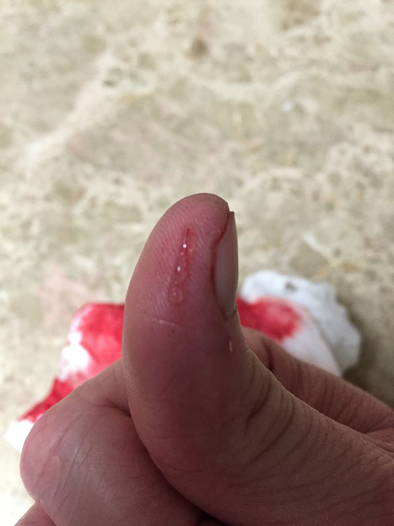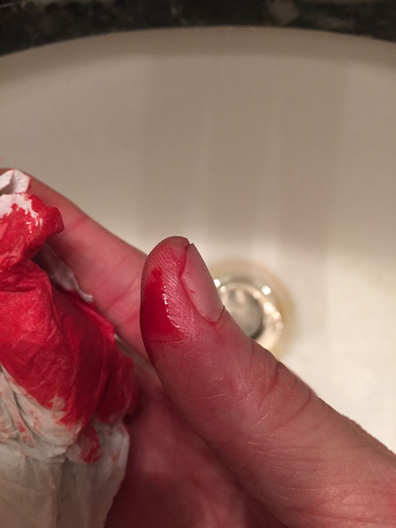 It had been bleeding like a son of a gun for a solid 10 minutes, and then my wife noticed it when I took a picture.