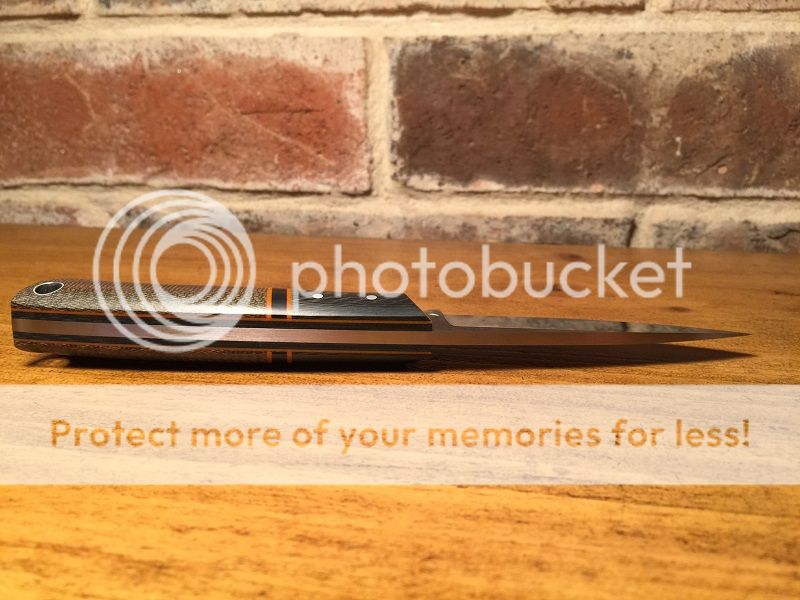 1. Josh Gallardo - OAL - 7" w/a 3" cutting edge. AEB-L @62RC ground nice and thin. It has a carbon fiber bolster with green micarta, black and orange spacer/pinstripe and aluminum hardware. I'll send it with a kydex sheath sized for large and small tek lok. $185