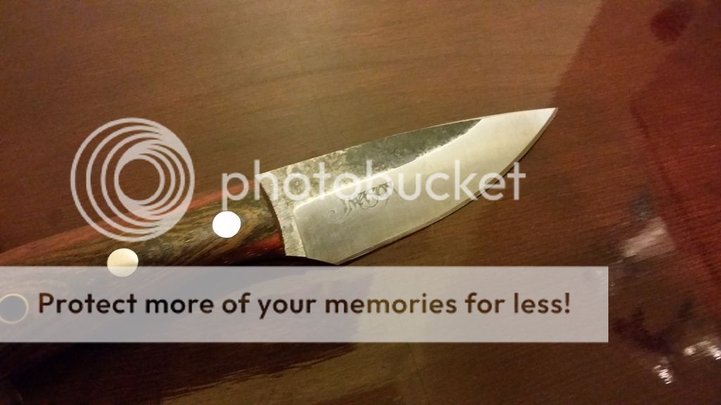 slicer. This beauty is a small edc fixed blade with Bocote and padauk as handle material. Aldo's 1084 steel.