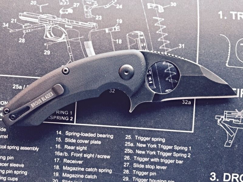 Brous Blades VR-71 G-10 acid stonewashed #346/1000 had my sights set on the CF version but couldn't pass up the price on this one and the only difference is the scales . Anyway very impressed with the fit and finish , nice feel in the hand , blade centering dead on , nice detent and very sexy ! Love the looks and the lines of this blade . Jason did a heck of a job designing this one and really glad he offers it now in G-10 since that made it within my reach at this time price wise .Flips lightning fast and super smooth And dig the pocket clip rides low but not to low and feels planted in your pocket . Might throw a lanyard on to to make it a little easier to grab and to accessorize 😎