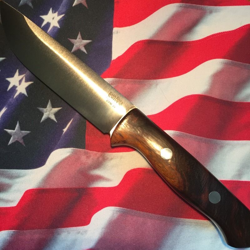 Well I recently picked up a Barkie Bravo-1 LT with CPM 3V and Green Canvas scales with no ramp.What a beauty feels so good in the hand and top Quailty craftsmanship , fit and finish was beautiful . I liked it so much I decided to pick up another Bark River . I've got a modest collection of folders and decided because I realized I didn't have any fixed blades so that's when my interest in Barkies started . Anyway I was going to get the standard Bravo-1 to go with my LT but then I thought why not go to the 1.25 and get longer blade and not just thicker blade .Went and checked out a few and found a Rampless and with this one decided to go with no jimping because the standard Barkie Jimping is nice but a little aggressive for my liking without gloves . I also decided to go with CPM 3V again because I really like its qualities and this time I went with Desert Ironwood its a nice looking wood and is also a nice stable wood . Very happy with my choices and thought I'd share my thoughts a long with some pictures and specs .