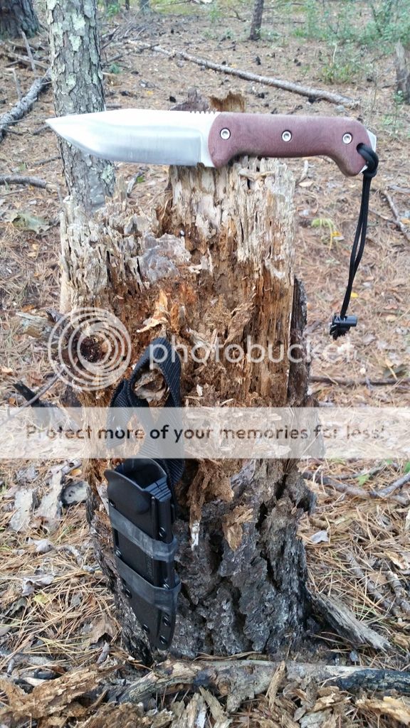 Sheath arrived thanks Bill much appreciated, it looks great with the black walnut scales, I just have to put my fire starter in it and add a Leatherman to the front pouch.