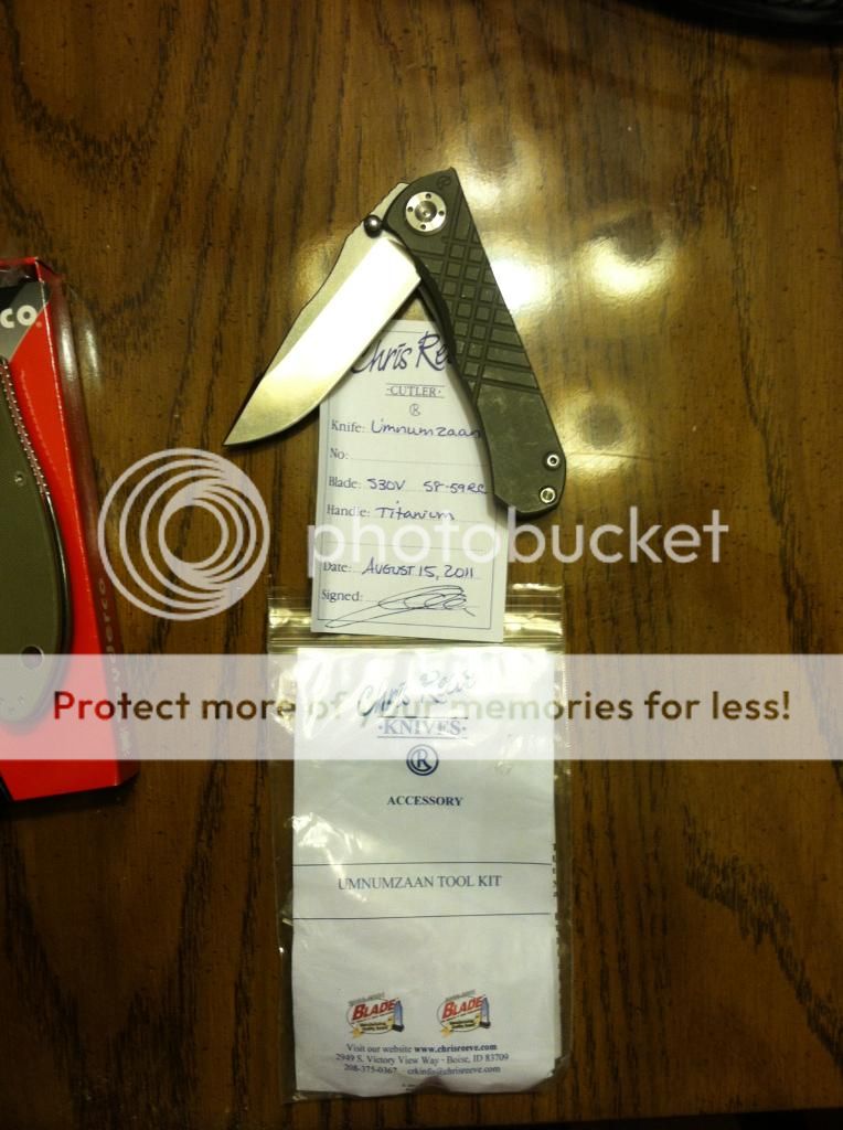6. CRK umnumzaan, carried, used but not abused, I touched it up lightly with fine stones on my sharp maker, comes with cloth, box, and BNIB umnumzaan tool kit (try finding one now). I did try to install a clip insert but the screw head stripped so the clip is a little loose. $sold