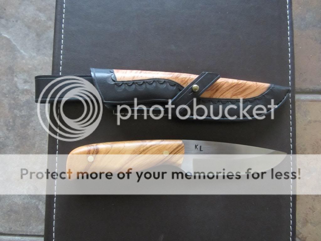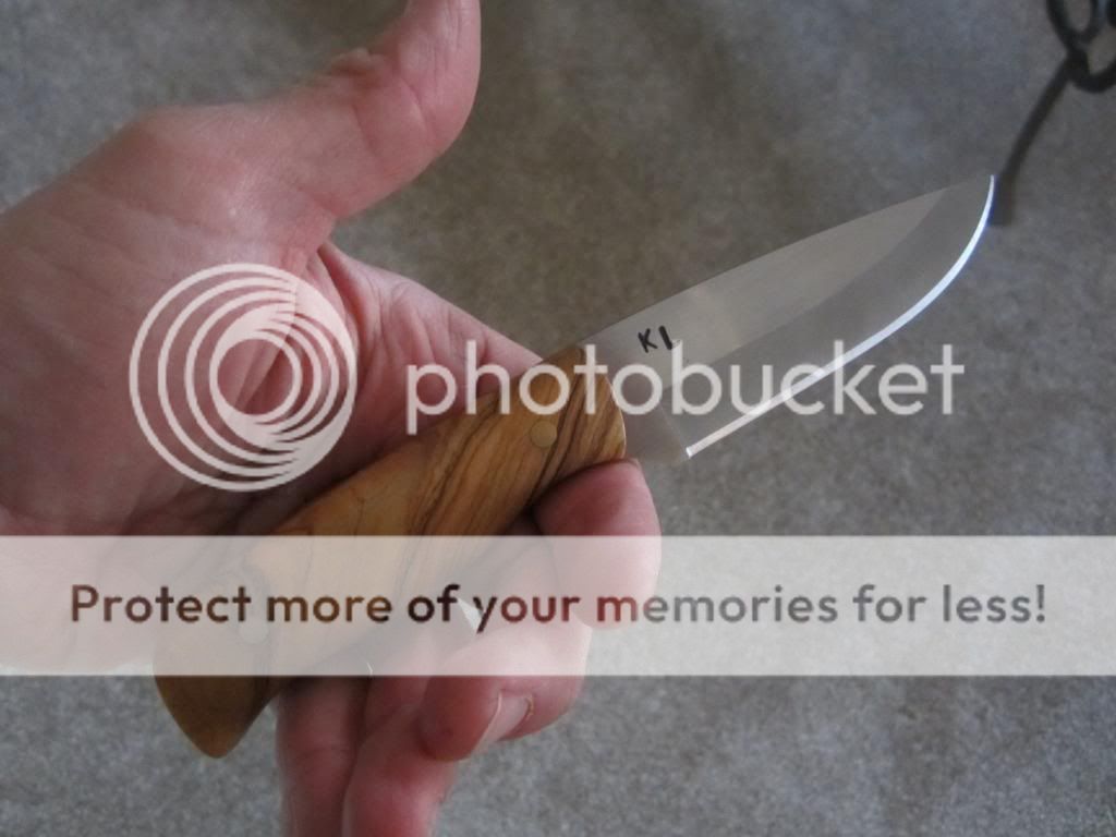 For sale is an unused never carried bushcraft by Karl-Erik Lindblad. Steel is 3mm O1 with satin finish and sabre grind. Scales are S. African wild olive with brass pins. Handmade sheath, which blends nicely with the wild olive scales.