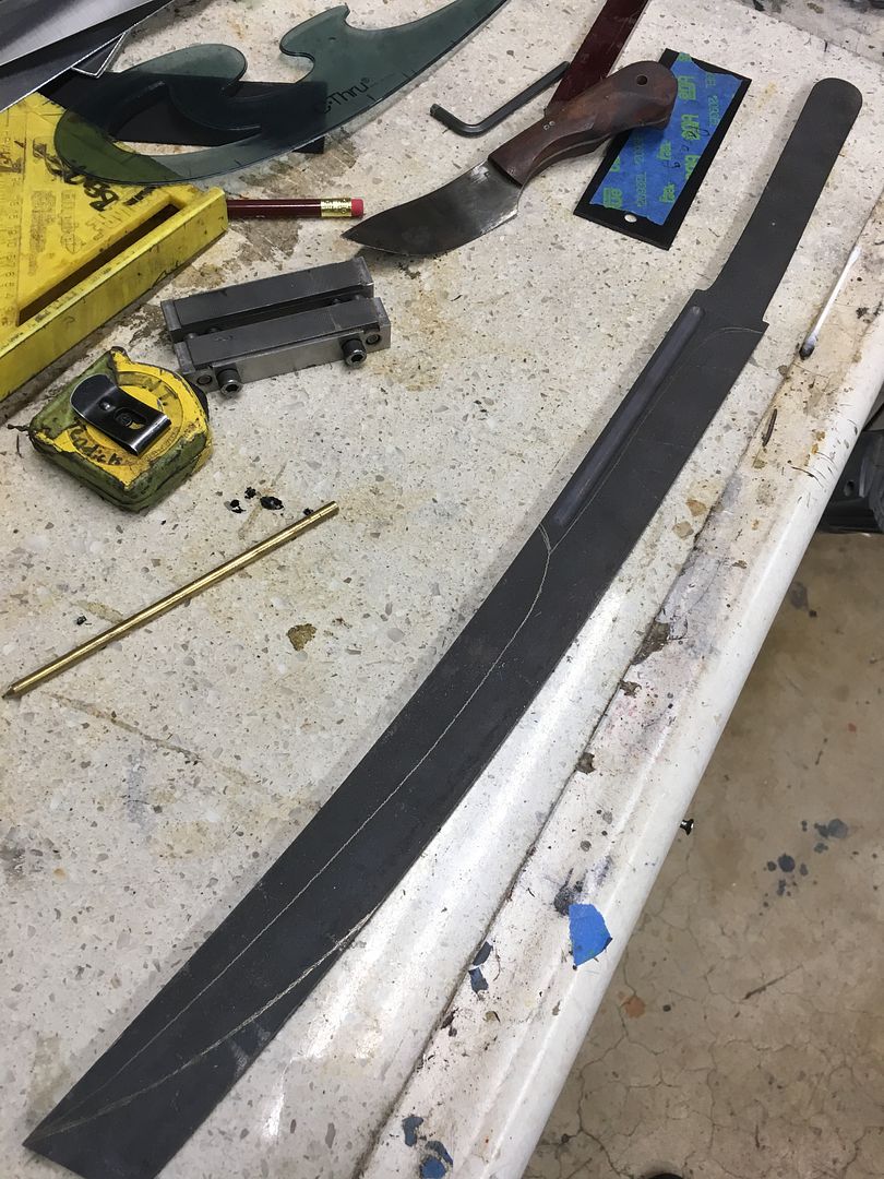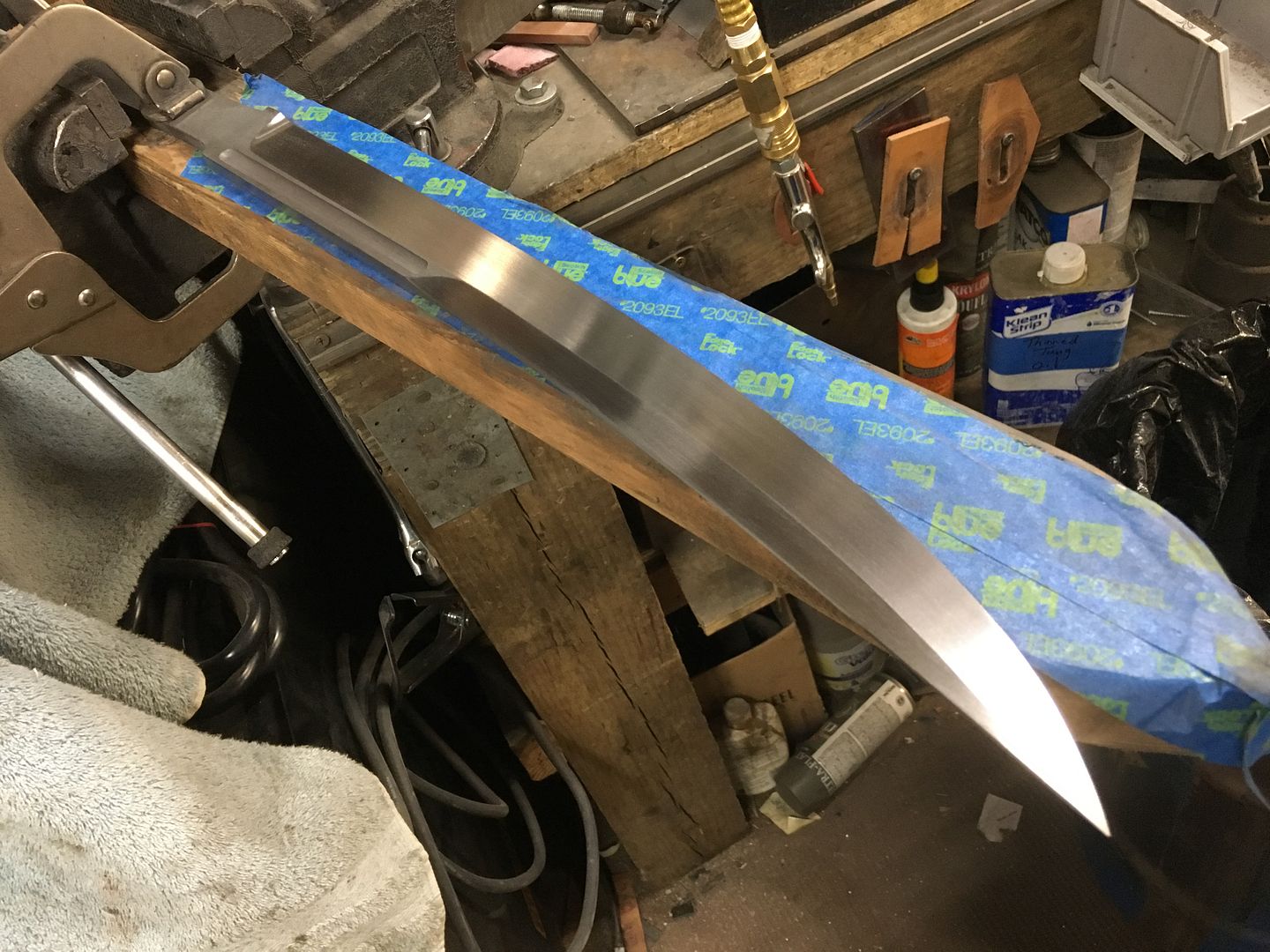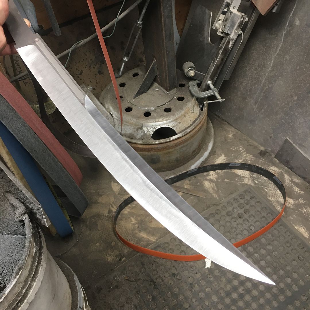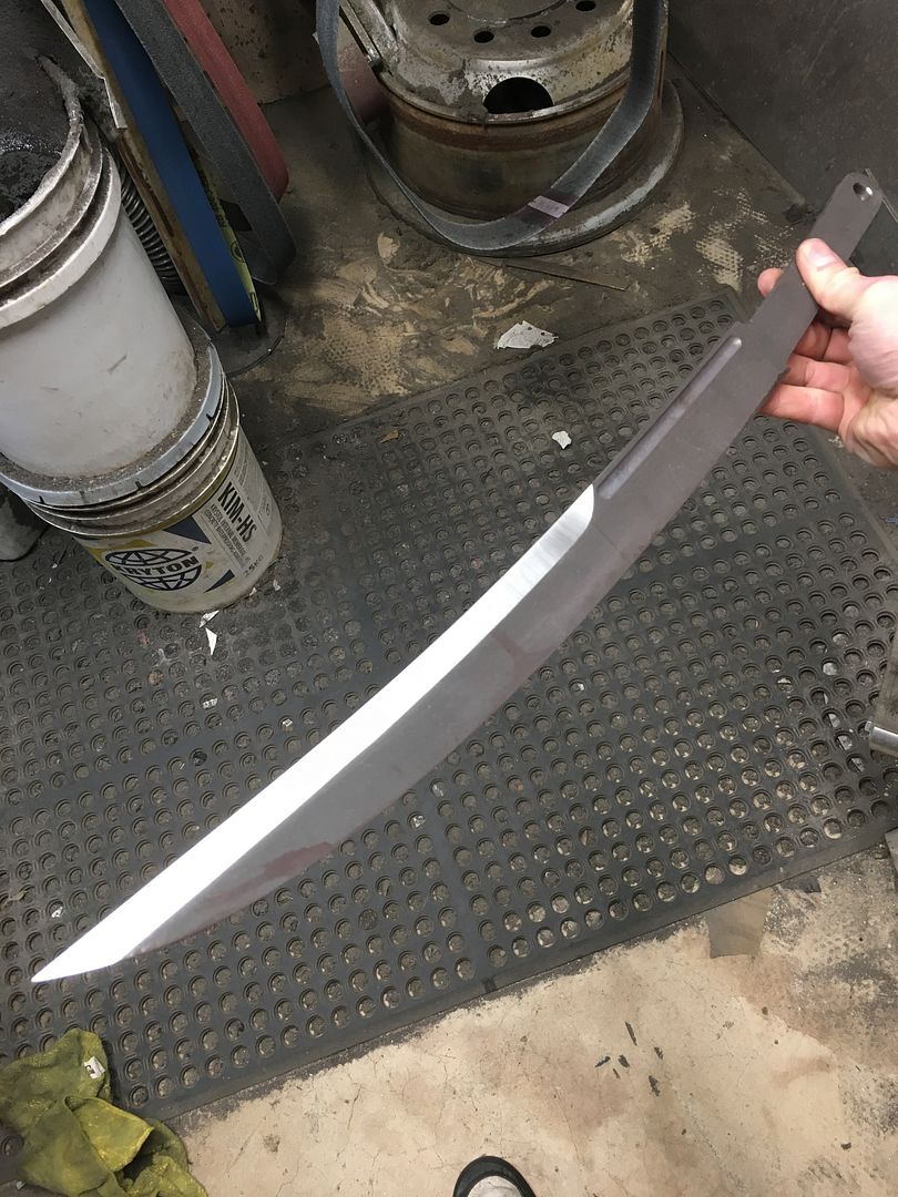 I gave this one a ton of sori. Blade length is around 16" and will be just over 23" oal.