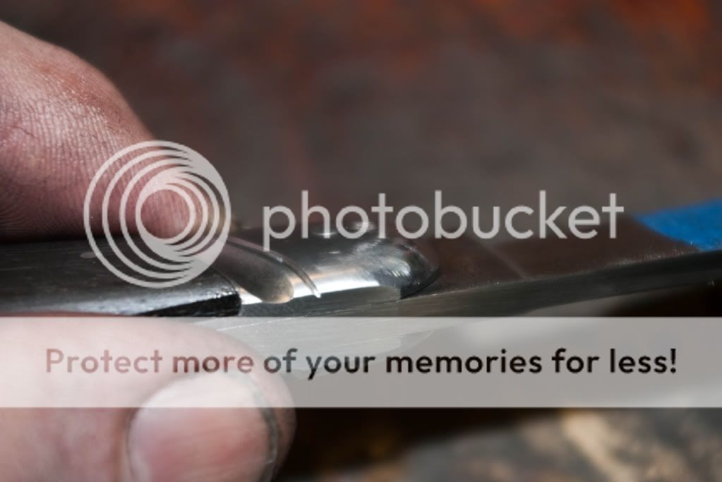 I use this hand held tapered reamer to taper the hole in the scale material. This prevents splitting of the material at a later date(hopefully!