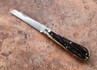 Lovely knife , with a rich history Kerry!! You have a lucky good friend!! To say I'm envious is an understatement!!!!Sometime ago in the 2012-2013 time frame I worked on the parts for this knife and Tony, the OldDog, schooled me about the pattern and heat treated them for me. This knife was a request from a good friend and I finally got the gumption up to tackle this tough pattern. It is based on the Case 6380 whittler, which is a standard 3 blade whittler...1 large master clip blade with 2 small secondary blades in the opposite end. My knife is built in a "half whittler" configuration with the standard clip master blade and a single secondary Wharncliffe blade.