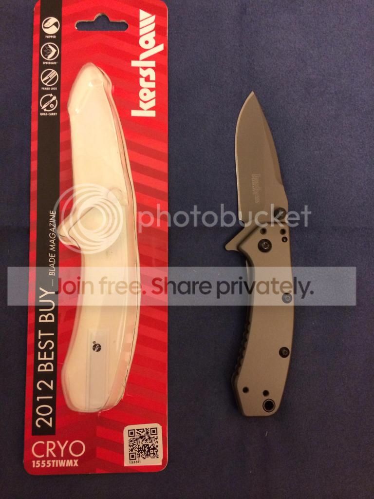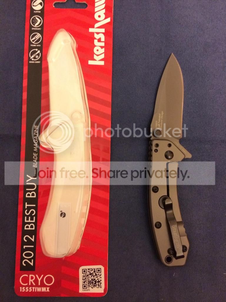 Up for trade is an excellent condition Kershaw Cryo. I have carried this 2-3 times, changed pocket clip to tip up and flipped it a few times. Not sure I have even cut anything with it. I don't see myself using it so up it goes. Lock up is solid and blade is mostly centered but looks slightly off at different angles.