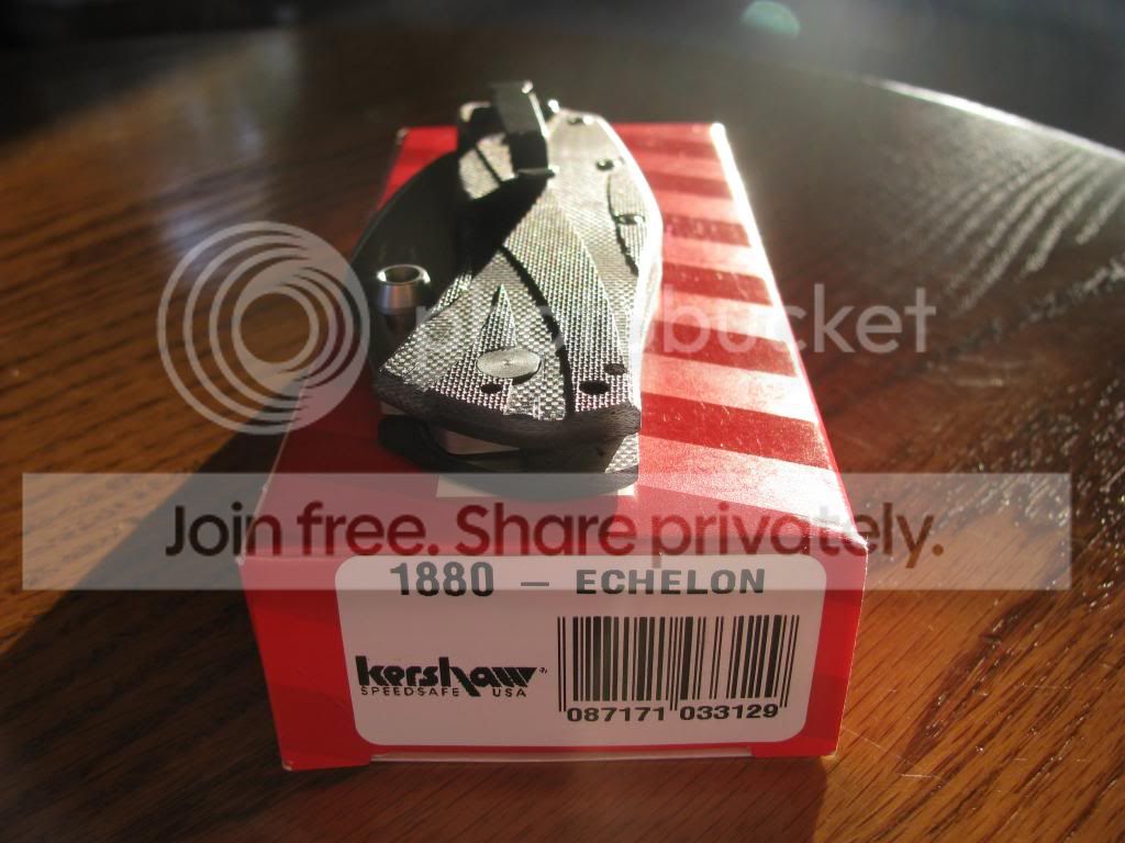 I have a lightly used Kershaw Echelon I would like to trade. It is not completely stock, I dyed the scales a royal blue that came out almost black, and right now it is de-assisted, although I should be able to get the torsion bar re-installed or just shipped with the knife. Comes with box as seen in pictures. It is centered and lockups up nicely. Personally I hated this knife assisted and liked it much better de-assisted. It has a nice detent and I never worried about it opening when I didn't want it to. Just never carry anymore, makes a nice medium-small EDC.