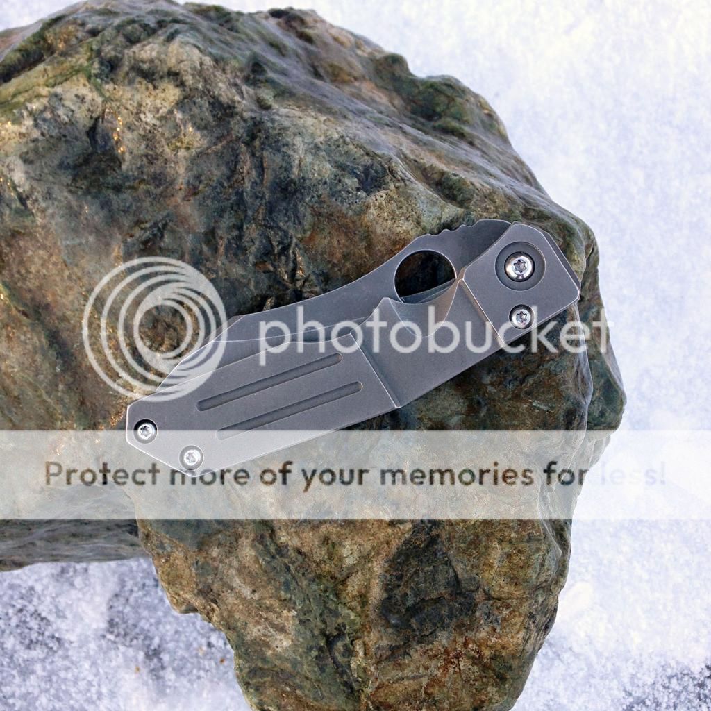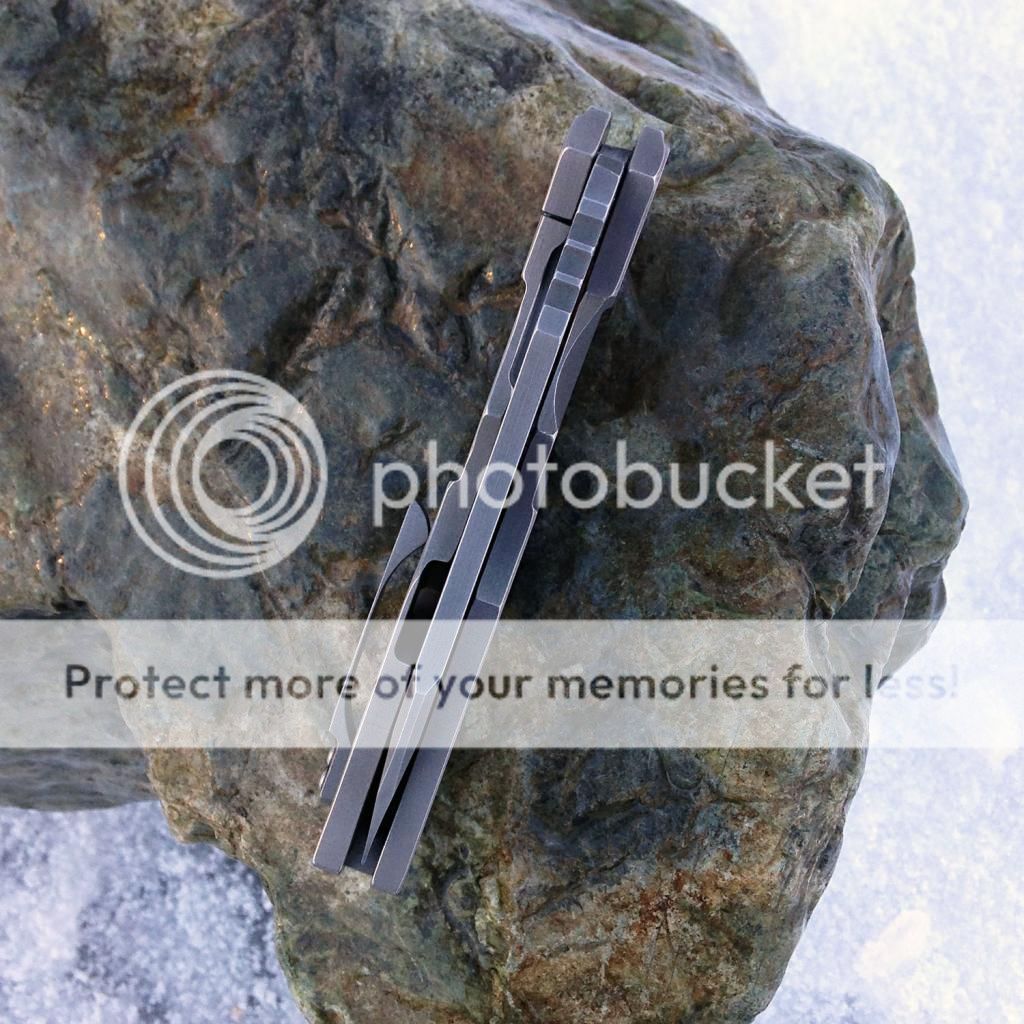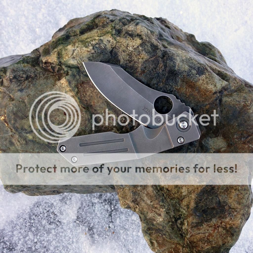 Fresh from the spa, lightly used Kingdom Armory Large Samaritan Custom. Only two like this and Daves books are closed as you know. This baby flips right open using the Spydie hole and has rock solid lockup. Blade is nice and sharp acid washed S30v. Blade is about 3.75 and total length is right at 8.75. Nice velcro pouch included. Has new clip on it now just made by Dave at KA. It goes into the pocket a little easier than the original clip (also included). As an extra bonus, Dave also installed an upgraded ti backspacer instead of the standoffs that it had originally.