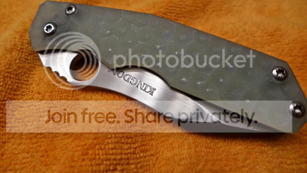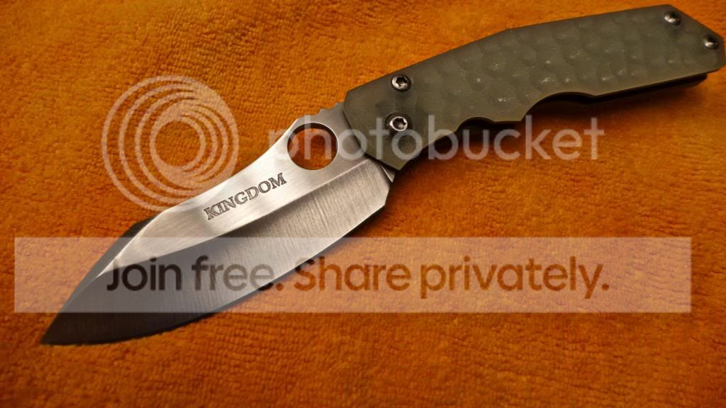 Looking to sell a new only fondled kingdom armory samaritan. It is a linerlock variation and has his dragonskin textured translucent g-10. S30V blade steel heat treated by paul bos!!! It is slightly off center as shown in the pics. It locks up rock solid! I am asking for $900 shipped tyd!!!! Last sale never materialized so it is back up again!