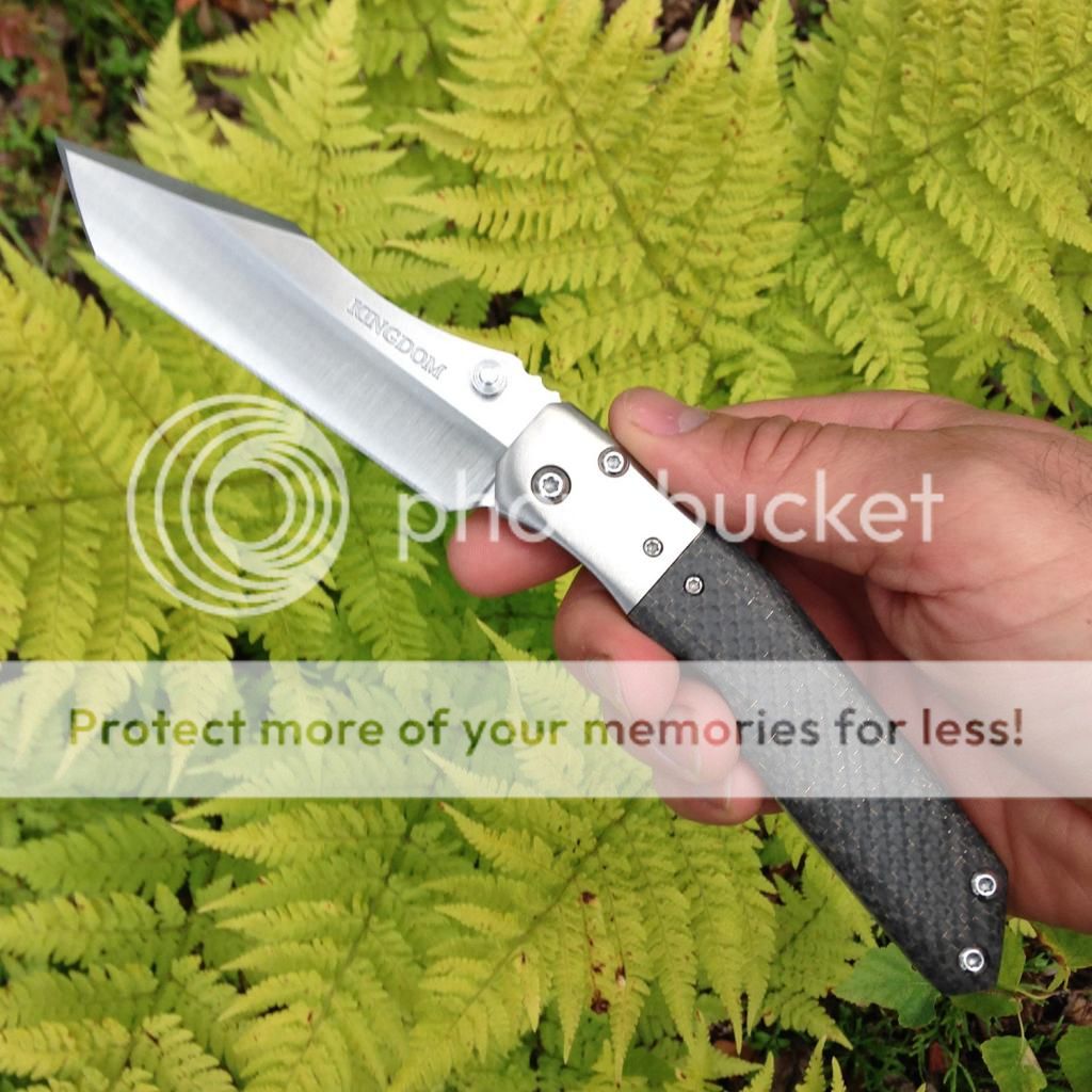 I've got a mint Kingdom Armory Super Masada No. 6 up for sale or trade. It's been carried a few times but hasn't cut anything and is still in perfect condition. This one has a ti bolster and LSCF scale and also features a ti backspacer engraved with Dave's signature and is dated 2014. Lockup is late and rock solid as designed by Dave. Blade is perfectly centered. This is a large folder but it is nice and slim and carries very well in the pocket. It took 2 years to get this folder after ordering from Dave. Looking for $1100 net - price includes shipping with insurance in USA.