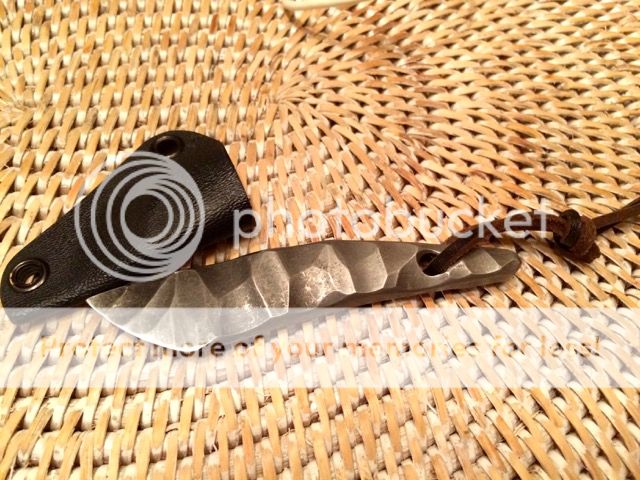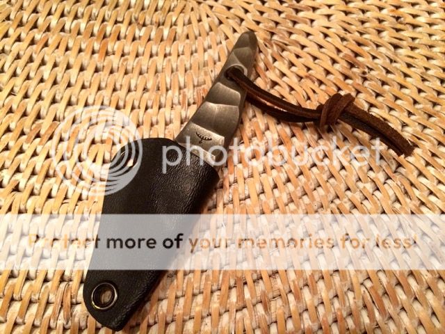 primitive kiridashi .Steel is 5/16" 1075 , knapped texture and a chisel grind. Acid etch and tumbled finish. 4 1/2" long