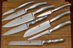 I am willing to bet you will get really good service from the new Japanese knife, if it has a steel made in Japan even their lower cost Chef knives are known for great service.I just supplemented my kitchen knives with a Deba, Nikiri and Sashimi from a Japanese maker called Sekizo. They are not high dollar, but they are sharp as can be and Japanese steel. I'll have to post a pic of my kitchen block at a later time.