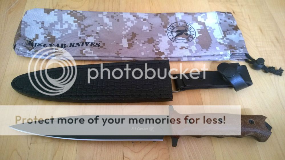 I just got this, & it's so cool, I'm just letting it go for a grail-type bowie. This is, IMO, the best of the few variations of this knife that Kizlyar produced. It's got the Uber-Tough Russian high-carbon U-8 steel, & the beautiful brownish Russian Micarta scales with the black fasteners & the very nice, thick, black leather sheath that lets the knife ride at the perfect height from your hip - this is the ultimate stabby knife, with it's 8" blade....OAL=13". The stock is 0.21" thick, but has a nice distal tapering & a very cool I-beam type of construction that allows the blade to be very tough/durable, but relatively light weight - this knife is surprisingly fast in hand....I kind of hope she doesn't sell. I'm selling her for $220.
