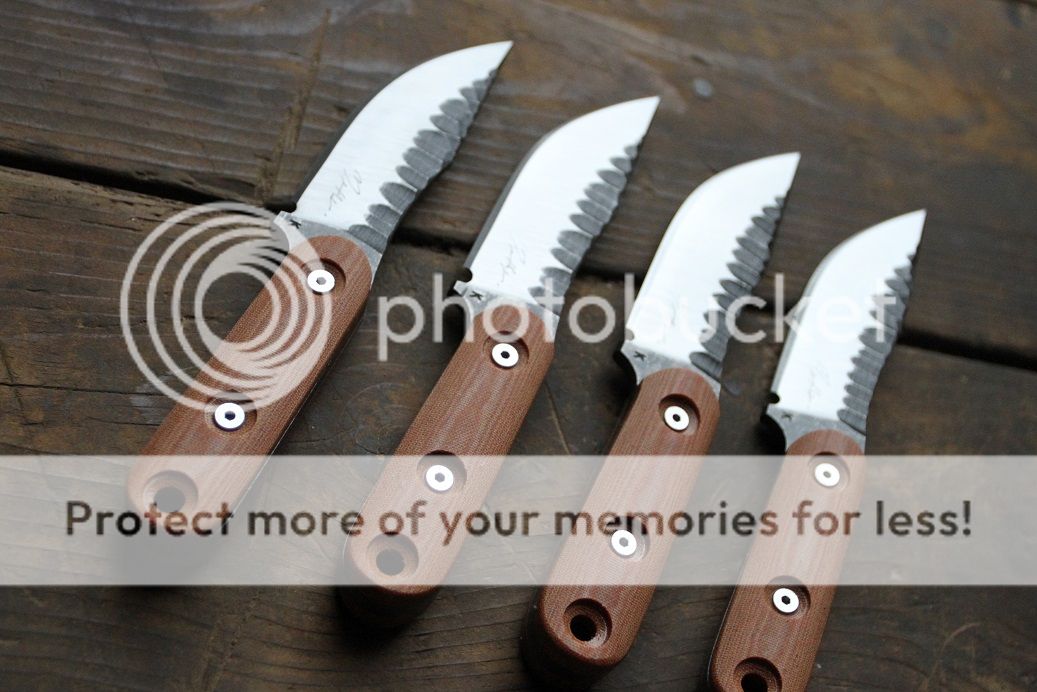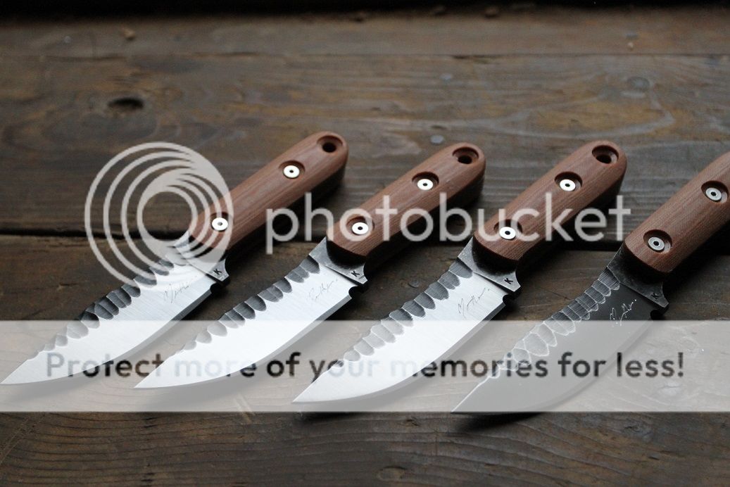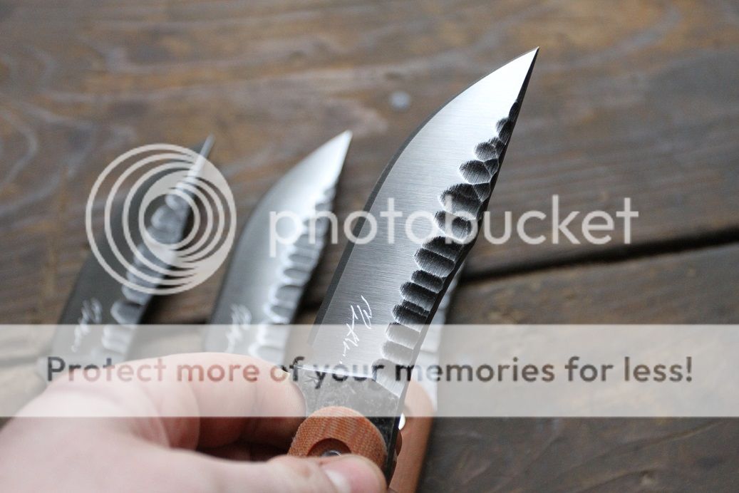 koonsie customs Feedback: +8 / =0 / -0 Joined Jun 12, 2014 Messages 255 Jan 28, 2016 #1 i haven't done "knapping" in a while so thought i would try it out once more All SOLD Blade 4.125" 9" OAL 52100 steel 58-59RC .25 thick natural micarta scales with stainless hardware stonewashed knapping and satin bevels SOLD shipped with kydex sheath Last edited: Jan 28, 2016