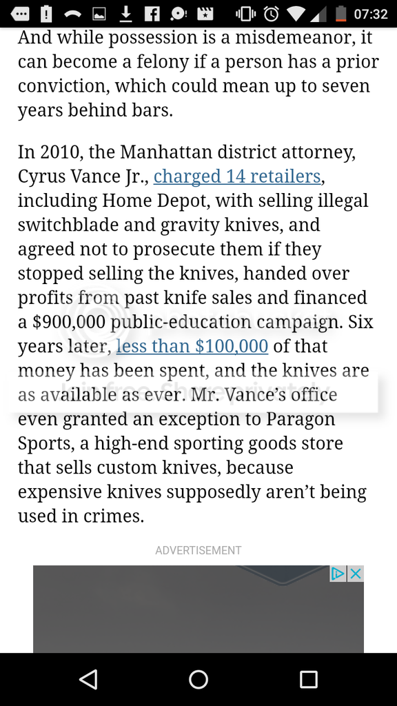 Due to very tough knife laws in NYC, I generally acquire and keep most of my collection out of state, but am always very worried about carrying anything. When I was a teenager, if you were caught with a "cool" knife by the police, the cop would usually send you on your way and add the knife to their personal collection! Nowadays, it's all about arresting you, if for no other purpose but to get you into the system, even if you charges are later dropped or dismissed.