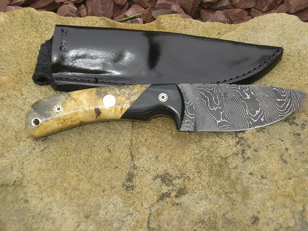 Here's a pic of one I finished and sold in late April. It was so close to when Bruce Bump unvailed to the world his hatchet pistol work of art thing that I couldn't stand the competition. I decided to wait til you all forgot how nice it was before posting my pic.