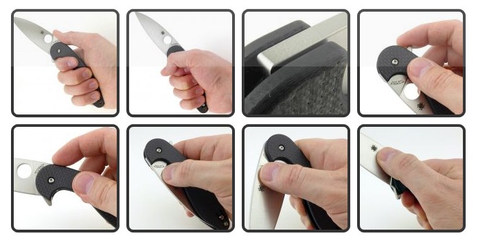 From Spyderco's product description "Designed by automotive engineer and knife enthusiast Paul Alexander, the Sliverax is the first factory-made folding knife to combine Spyderco’s Compression Lock™ mechanism with a flipper-style opener. Its sleek drop-point blade is crafted from CPM® S30V® stainless steel and proudly includes both a fully accessible Trademark Round Hole™ and an index-finger flipper to support a full spectrum of one-handed opening options with either hand. A full-flat grind gives it outstanding edge geometry and its slightly negative blade-to-handle angle enhances its cutting leverage and shortens its opening arc for swift, positive deployment.