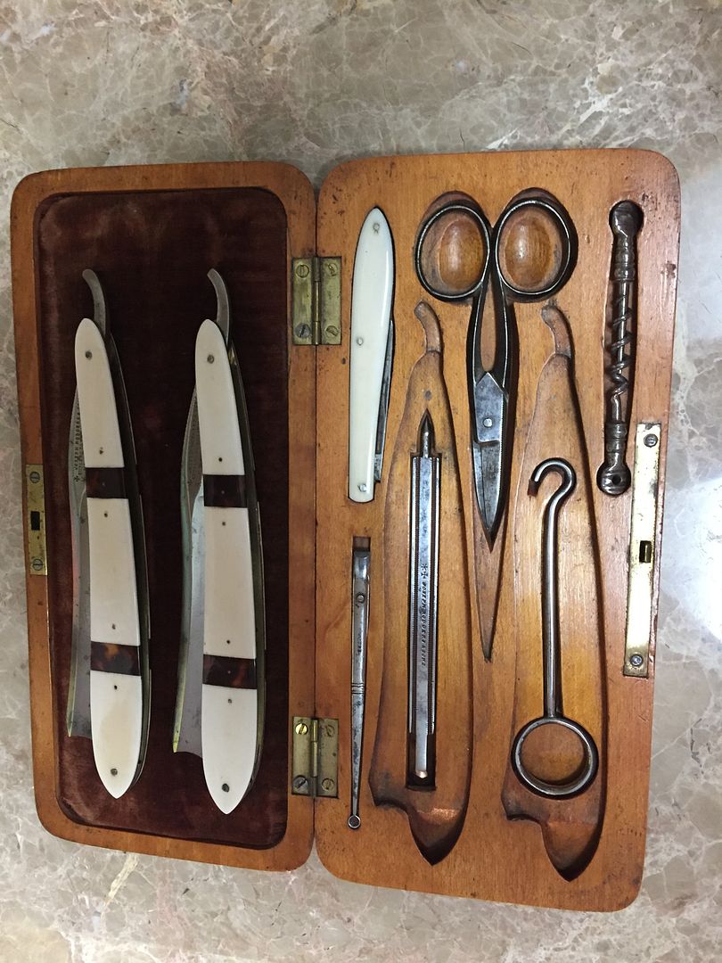 I've always been fascinated by knife sets, meaning anything that involves more than just a knife alone. I guess the first knife sets would have been simple knife and fork combos used in Roman times or earlier, but I'm thinking more about various knife sets from the 1800s onward. There are quite a variety of combinations available from around the world during the mid 1800s to present day. Mostly though, these sets seem to revolve around eating or tools, and both present many wonderful examples throughout time. Enclosed is an ad from 1895 showing some "Traveling Sets", and a couple of actual knife set examples. One is a tool set from Henry Sears which dates to the very early 1900s. Henry Sears (not the same as Sears & Roebuck) was a good old American cutlery name, but the set was contracted out to Prussia/Germany which was quite common at that time. It has a folding blade within a wood handle which accepts the various tools in the other side of the handle. The other one is a Schrade Boy Scout camping set which has a patent date of 1-27-42. Please ad pictures, thoughts, and comments, and sorry if this topic has already been covered.