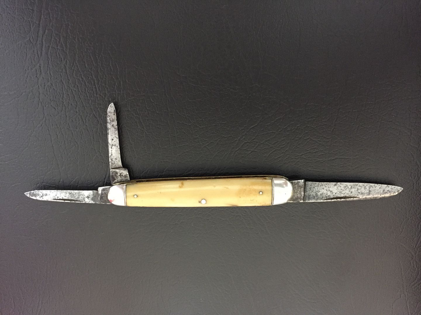 To start, I cleaned off all the rust and grime but left most of the patina (and some pitting unfortunately) on the blades, liners, and springs. All three blades sat proud so I reground them and tried my best to match the fresh cut areas to the rest of the blades. Regrinding was the only way to go because filing the kicks would have lowered the blades too far and made opening them difficult. The bolsters got cleaned with a wire brush to keep their discoloration but get rid of the gunk and the ivory got gently cleaned and soaked in oil. The rough edges got smoothed out and everything was fitted back together. Finally, I very carefully peened it and tried to blend all of the new with the old. My goal was a knife, that despite the looking original, functions like new.