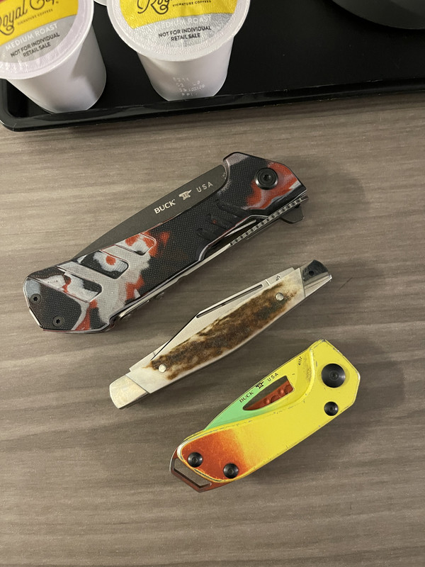 Beautiful knives. Are the drop points factory or custom?A trio of Buck 119's, Magnacut, 420HC, and 3V: