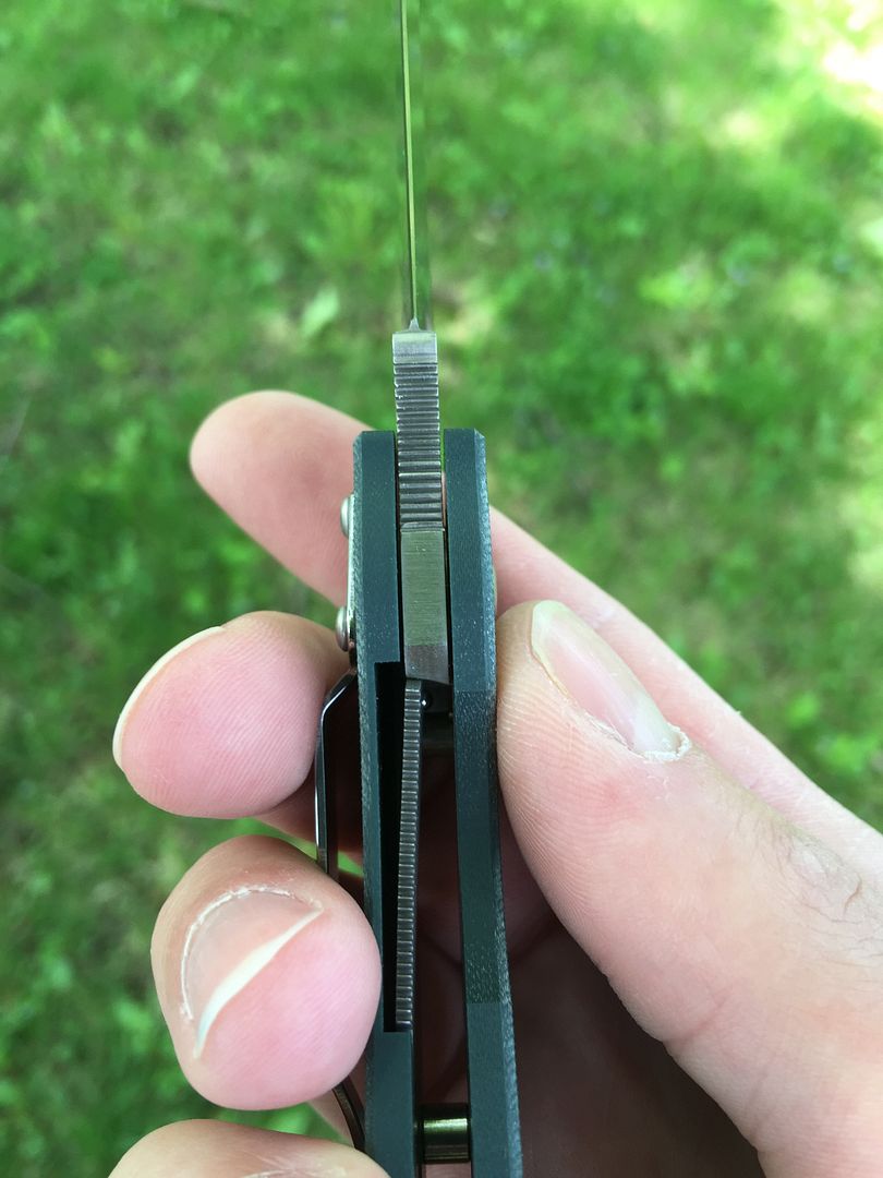 Lock up is perfect. Full engagement of the liner, while still engaging early on the tang.