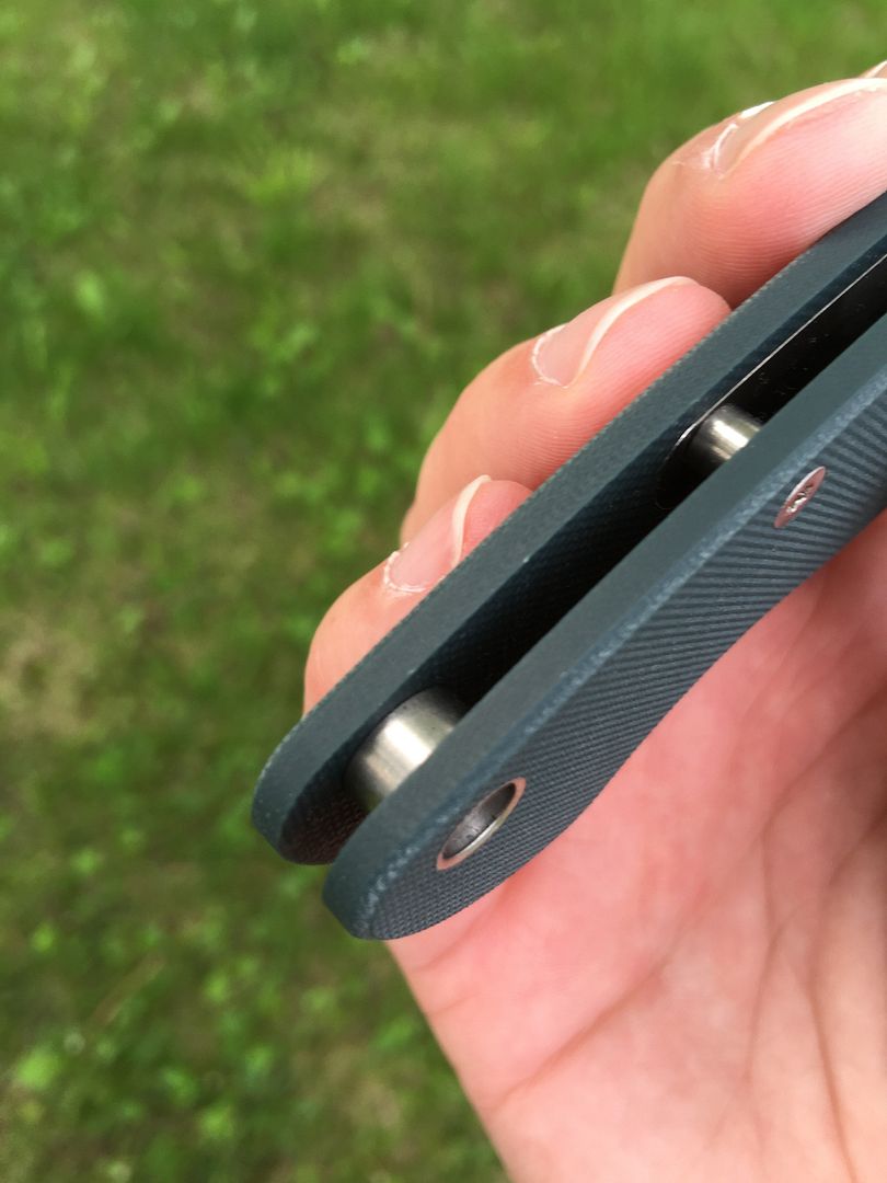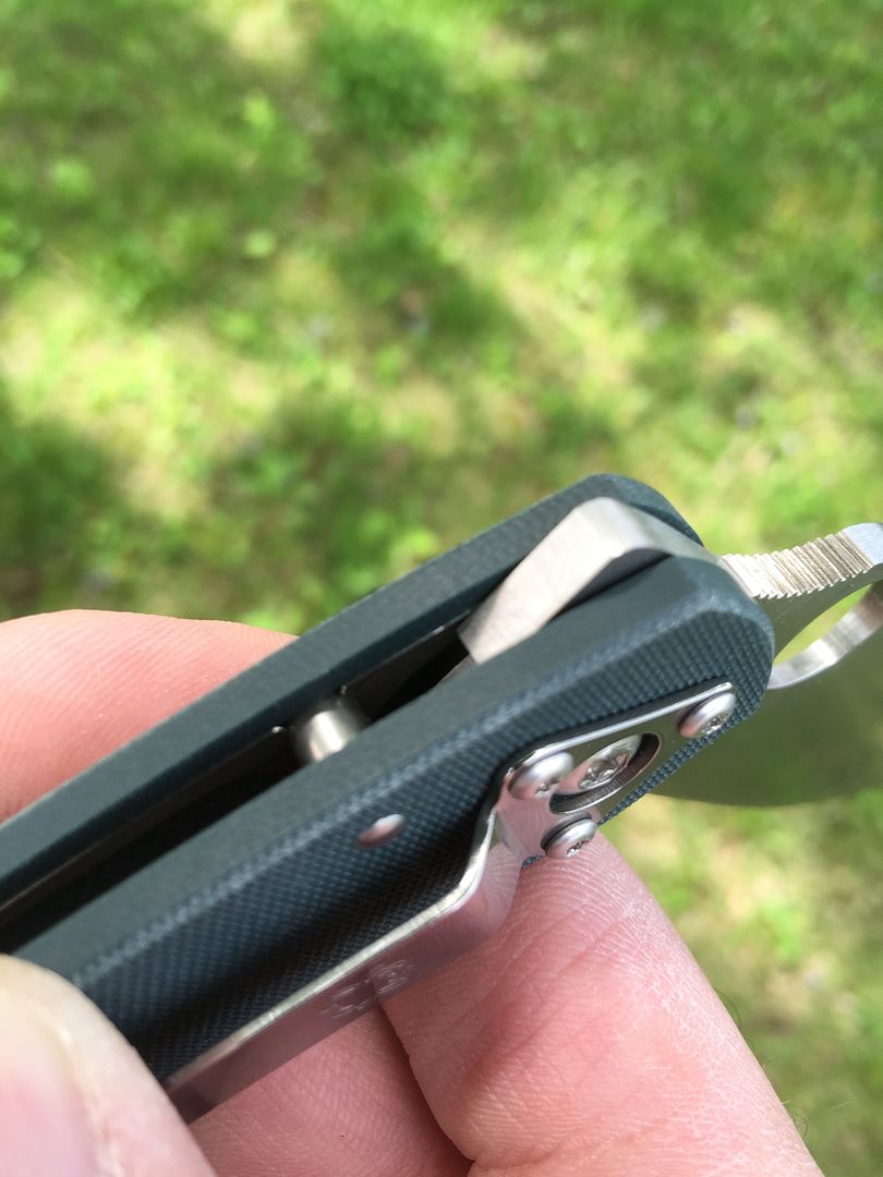 And the backspacers. Not a huge issue to me, but the upgraded larger hardware is a welcome change, and I always enjoy being able to rinse the knife out easily. Also, when reassembling, the knife should stay true easily, as 3 of the 5 connection points between the handles are stepped and therefore machined to a specific width. The knife should have an even stronger build than previous incarnations of this model, as the handles are compressing against those stepped areas, as opposed to relying on just the screws.