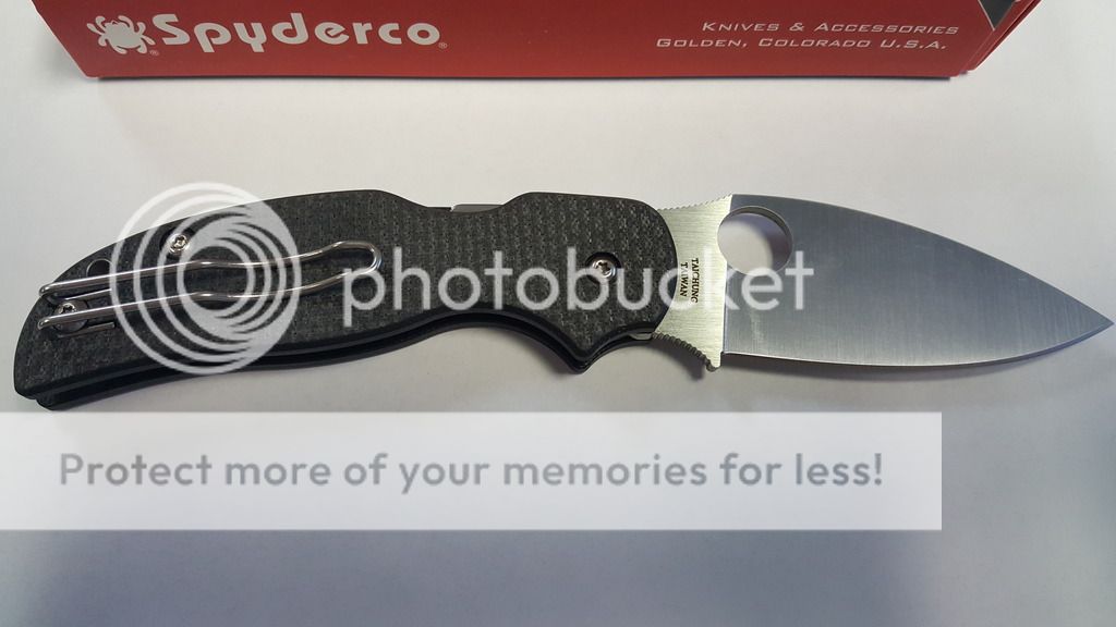 Up next is a LNIB Spyderco Sage 5. I'm labeling this one as "LNIB," because I've tested its sharpness on a piece of paper, put a drop of mineral oil on the pivot, and worked the action a little bit. Centered, smooth, and the action is breaking in nicely. Not quite a "free dropper" yet, but it's getting there. This one has not been carried. Please see pics below.