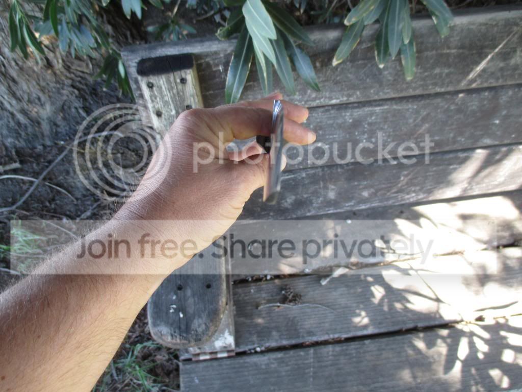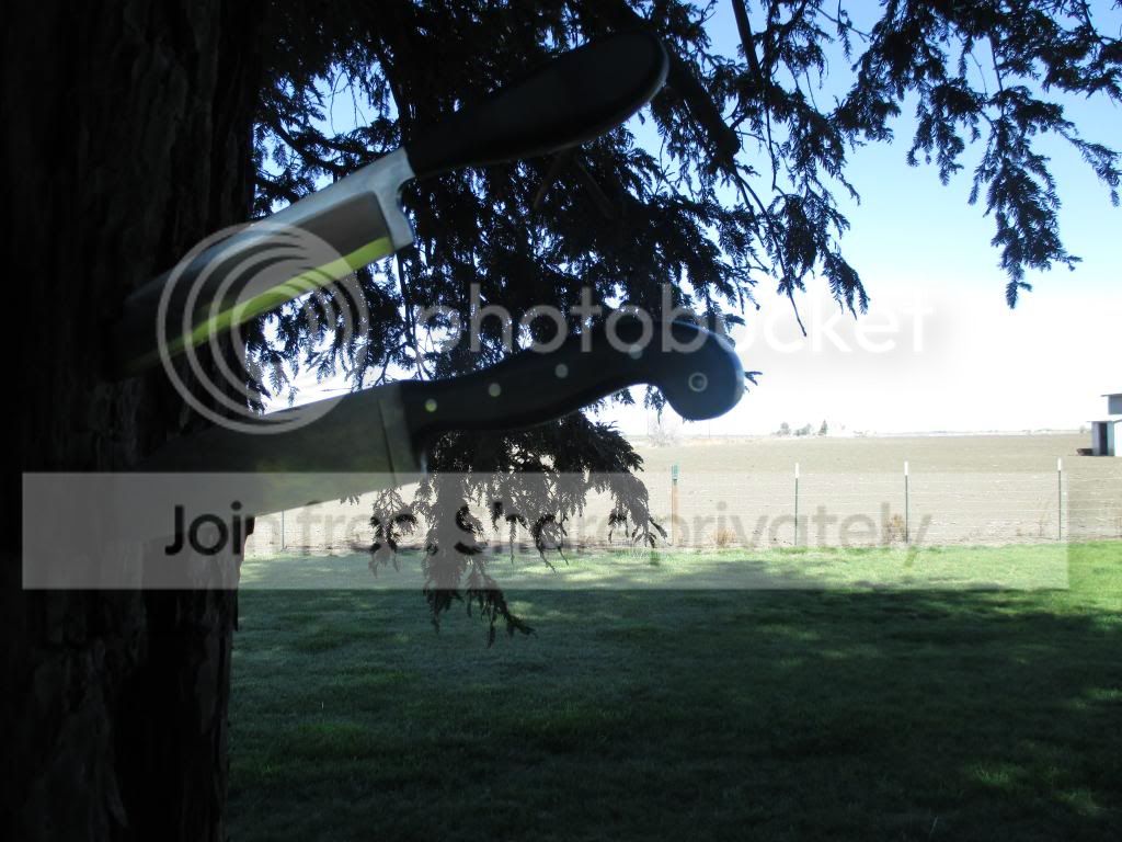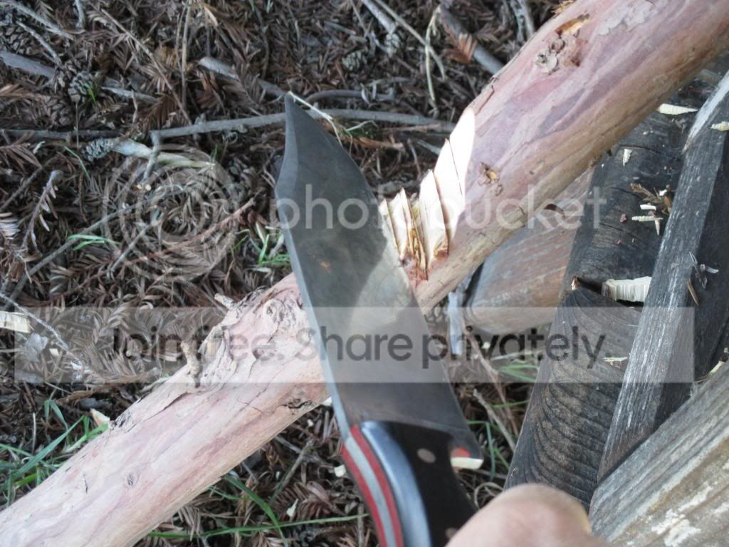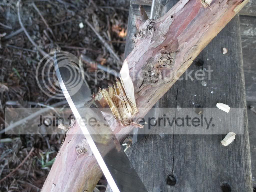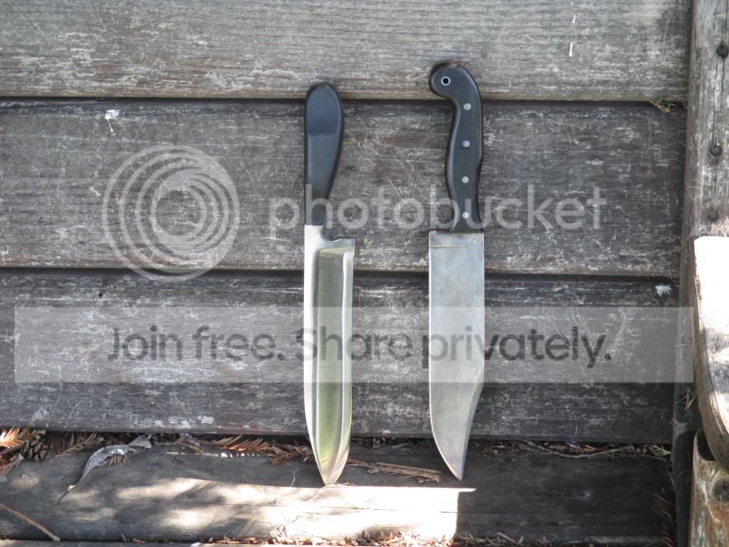 I slipped, and hit the edge with the chuck. Made a pretty nice chip, and chewed up about 3/4" of the edge up. Nothing I couldn't fix though, but my edge itsn't as straight as RJ's was. It wasn't my best day at the grinder, that's for sure, but it'll eventually get worked back to a straight edge. Still nice and sharp!!!
