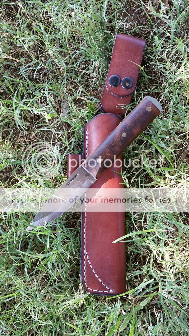 Condor Woodlaw with maple handles and brass pins. Comes with Skystorm sheath. Sheath has a long scratch that runs the length of the face. Otherwise great shape.