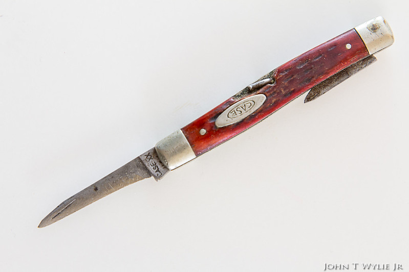 The red handled Case knife has seen some serious use, as it was sharpened a whole lot. Dad seems to recall him using this one to whittle.