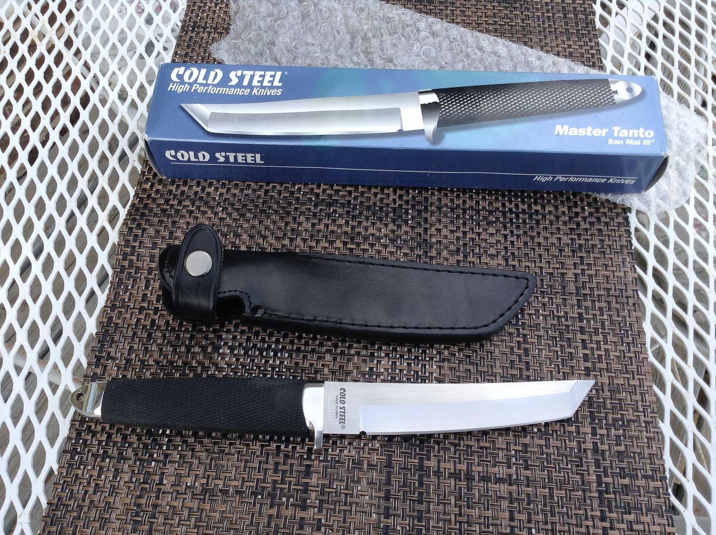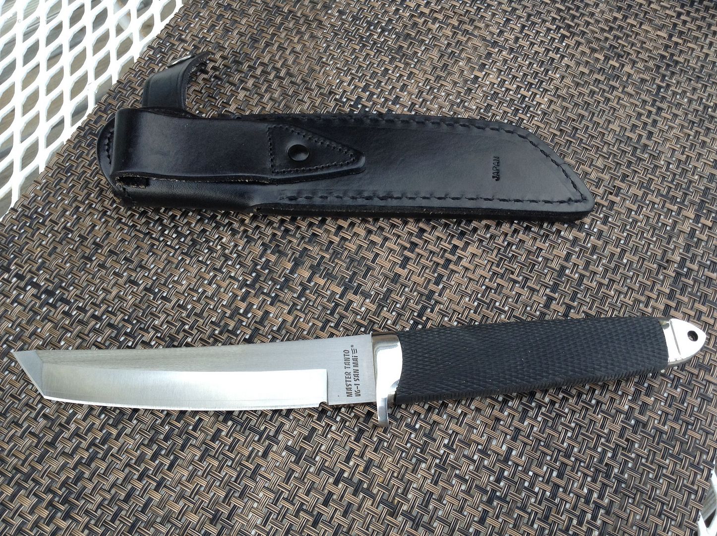 First I have a Cold Steel Master Tanto in SanMai III. This one is unused and includes the factory leather sheath. --SOLD--