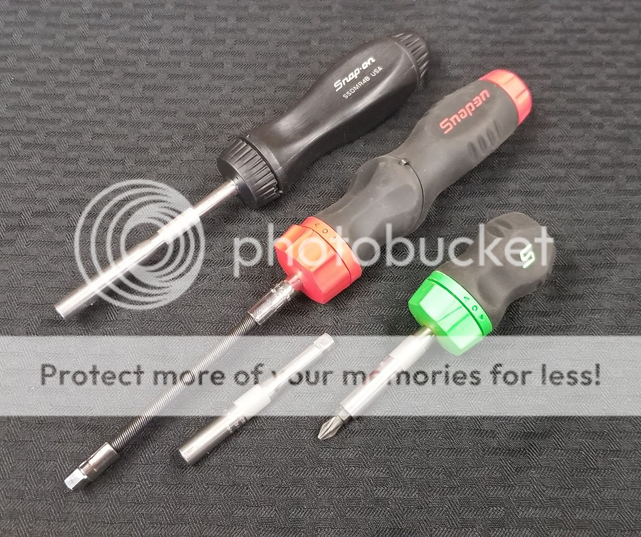 Snap On 3 Piece bit driver set, 5 position ratchet bit drive with 2 drives, stubby and hard handle, would like to sell as a set, all 3 for SOLD