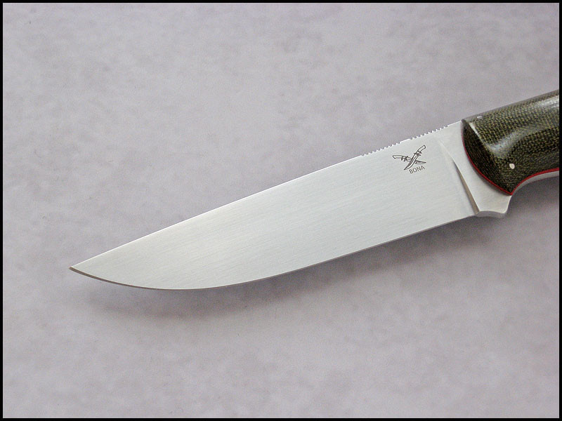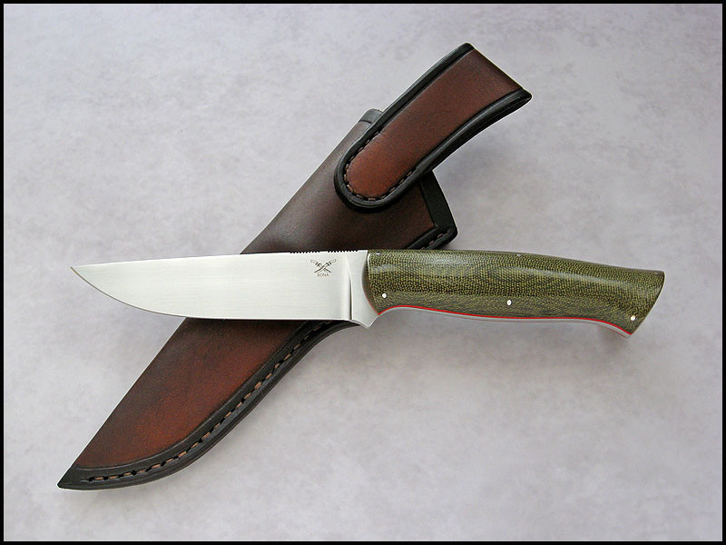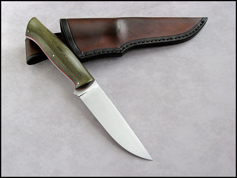 Comfortable, ergonomic handle, useful thumb ramp, practical, hand made sheath.