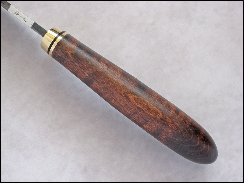 Bona The Art of Harmony Feedback: +31 / =0 / -0 Joined Apr 27, 2006 Messages 1,158 Dec 30, 2015 #1 Koziołek in polish language means "young, little goat" steel high carbon NC6 / 3.7 mm [0.146"] length 194 mm [7.638"] blade 90 mm [3.543"] handle dyed Maple, brass sheath leather Price - 165 US Dollars. SOLD Price included International Priority Mail Last edited: Jan 14, 2016