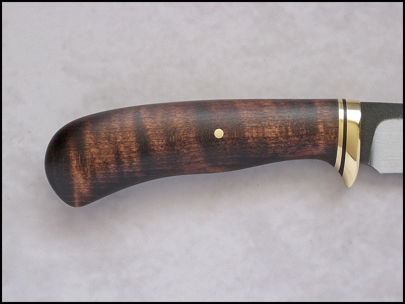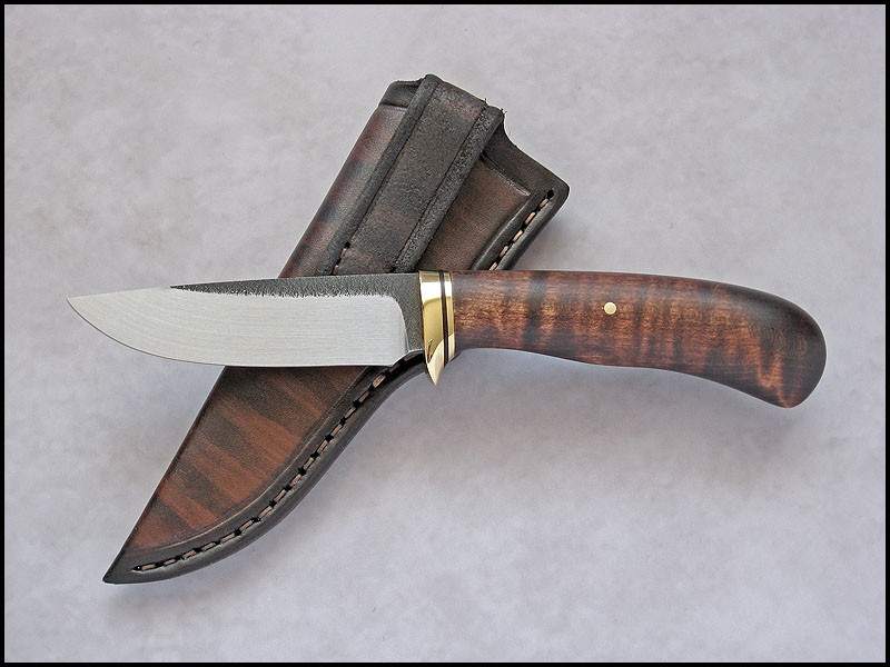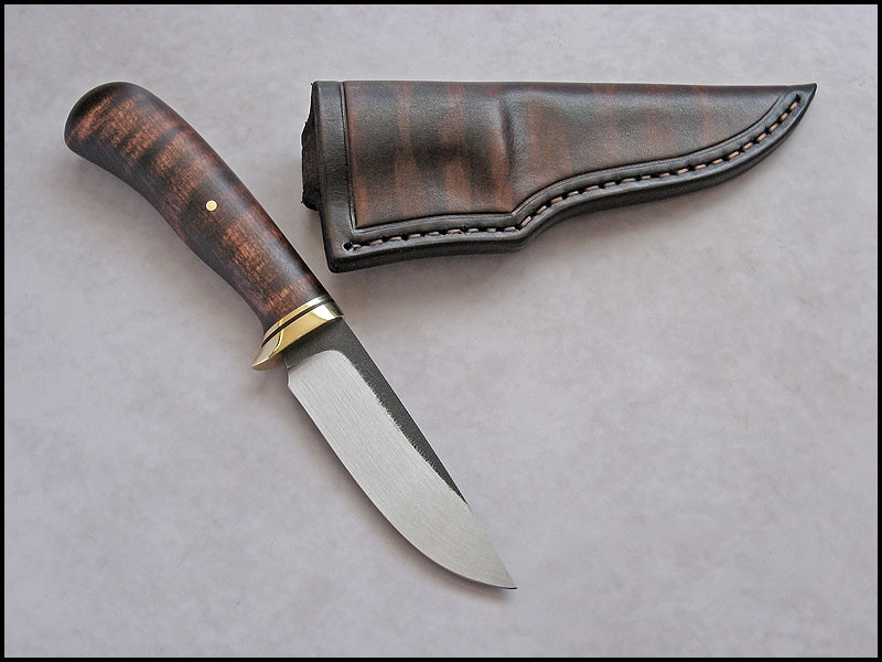 Koziołek in polish language means "young, little goat" steel high carbon NC6 / 3.7 mm [0.146"] length 194 mm [7.638"] blade 90 mm [3.543"] handle dyed Maple, brass sheath leather Price - 165 US Dollars. SOLD Price included International Priority Mail