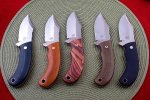New, never used. CPM 154 blade steel. Green canvas micarta with optional red liners and mosaic pin. Comes with Tom's awesome kydex. Top edge on this one is not currently sharpened, but it sure wouldn't take much to make it sharp. Mine is the second from the right in this pic(pic borrowed from Tom. You think I can take pics like this?) Asking $350 shipped to any U.S. address. Outside the U.S., actual shipping charges apply. Paypal is ok, but I ask that the buyer split all fees with me.