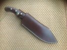 The sheath is hand made by me for each blade and designed to be a "user" not a wall hanger or a perfect store bought machine made sheath.
