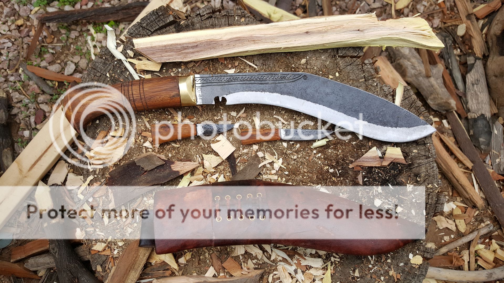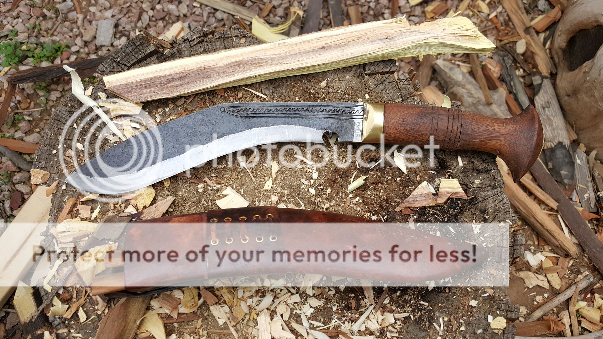 Brand new EGKH Villager Kukri. This one is nice and sharp, straight, 10" blade with 1/2" spine but feels remarkably lightweight in hand. Supposed to be 800 grams for knife and sheath but I can't verify that.