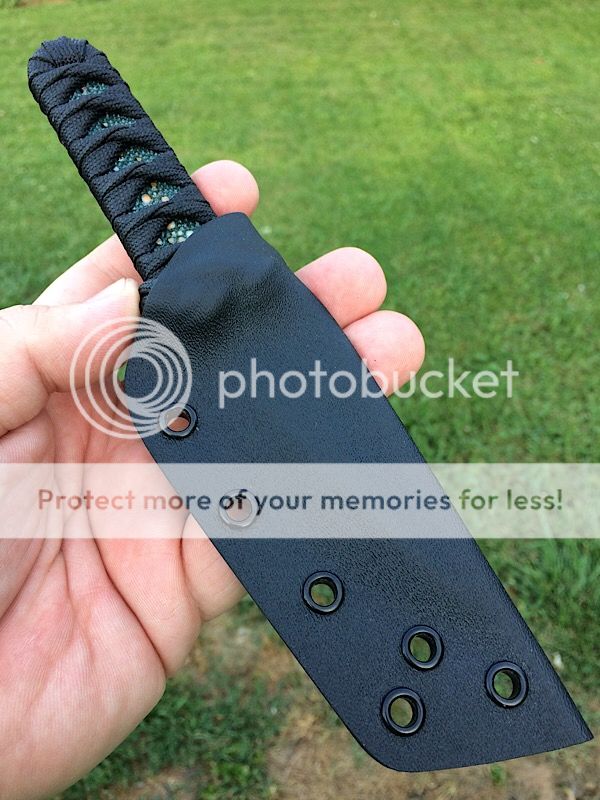 Black tsukamaki handle. Amazing emerald green stingray hide. West System epoxy hardened.