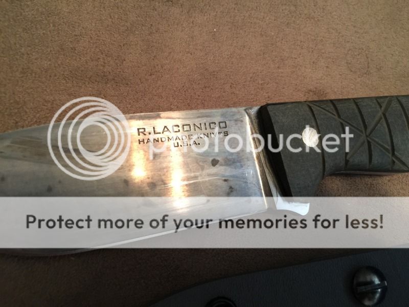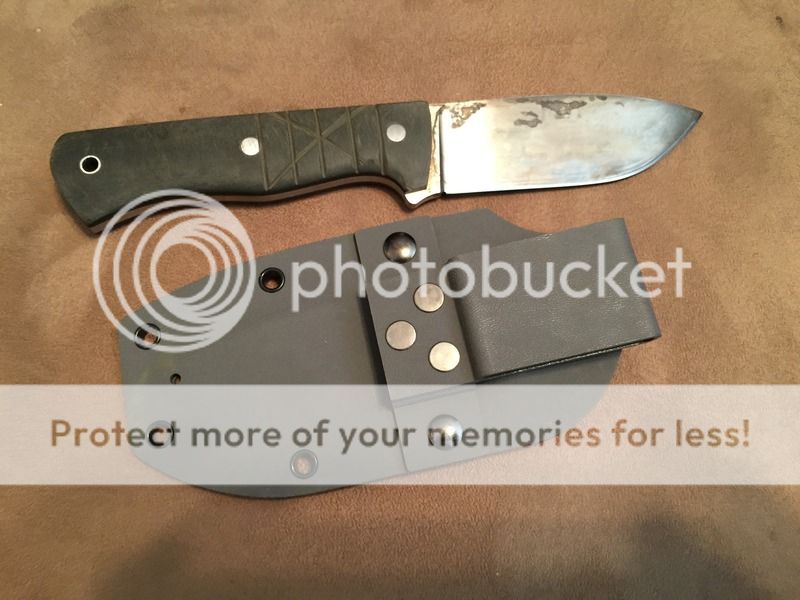 There is some history with this one! I thought I had lost it forever, but it made its way into deer camp in Oregon and stayed there for about five years. It's stained, it's a ugly, and someone did a file job on the handle. But it's otherwise rock solid. Edge has been kept in excellent shape with no nicks or dings. The sheath is practically brand new because I had it the whole time at home. It is 3/16ths O1, blade is a bit over 4" long, Micarta scales. I have since gotten into smaller knives, so am letting this go at great price. $125 shipped in the US.